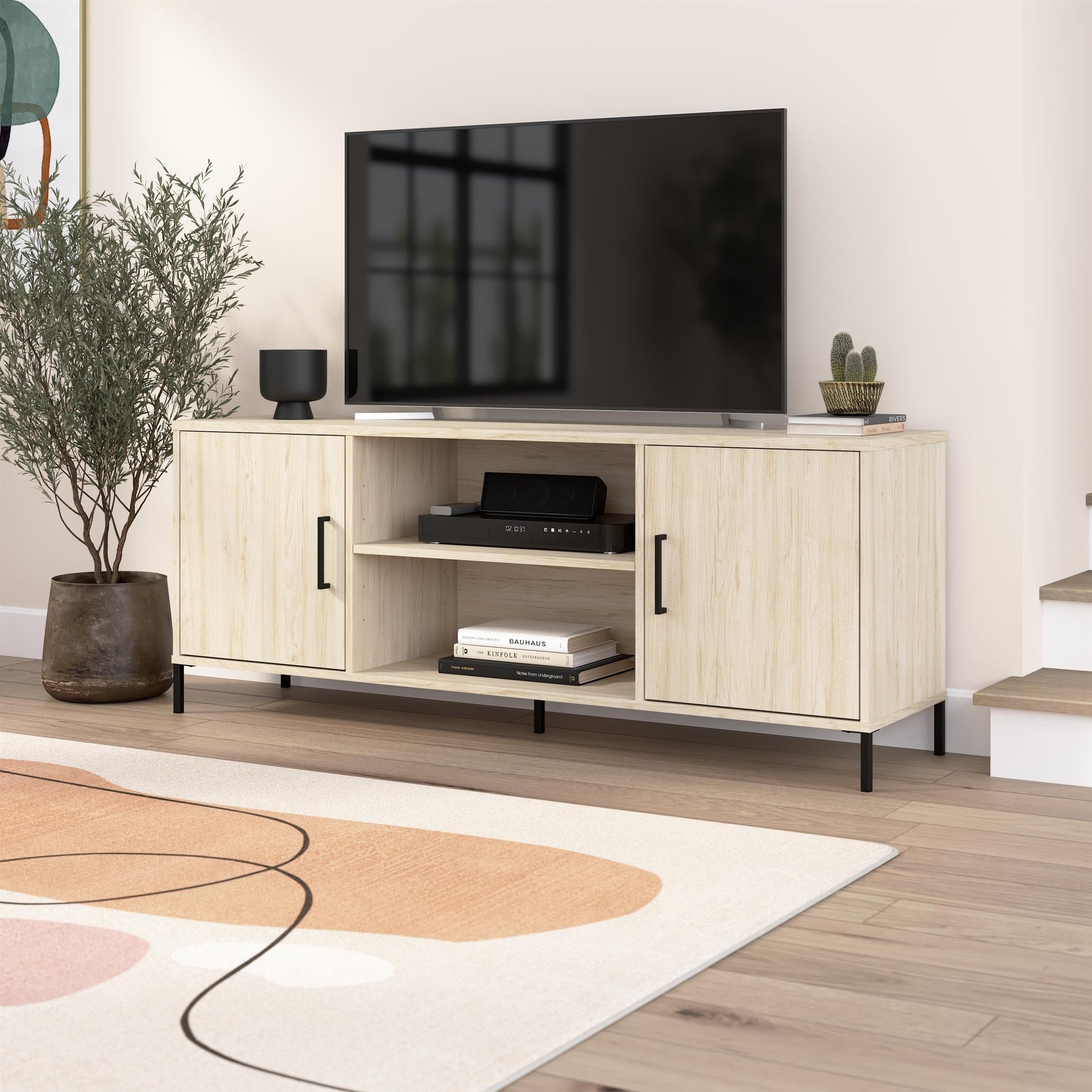 - SPACIOUS STORAGE SPACE: Media console supports TVs up to 70 in. or 70 lbs. and boasts 2 large concealed cubbies that give ample space to organize books, media, gaming consoles, decorations, and more. 3.9 in. clearance allows for robot vacuum to easily access under furniture.