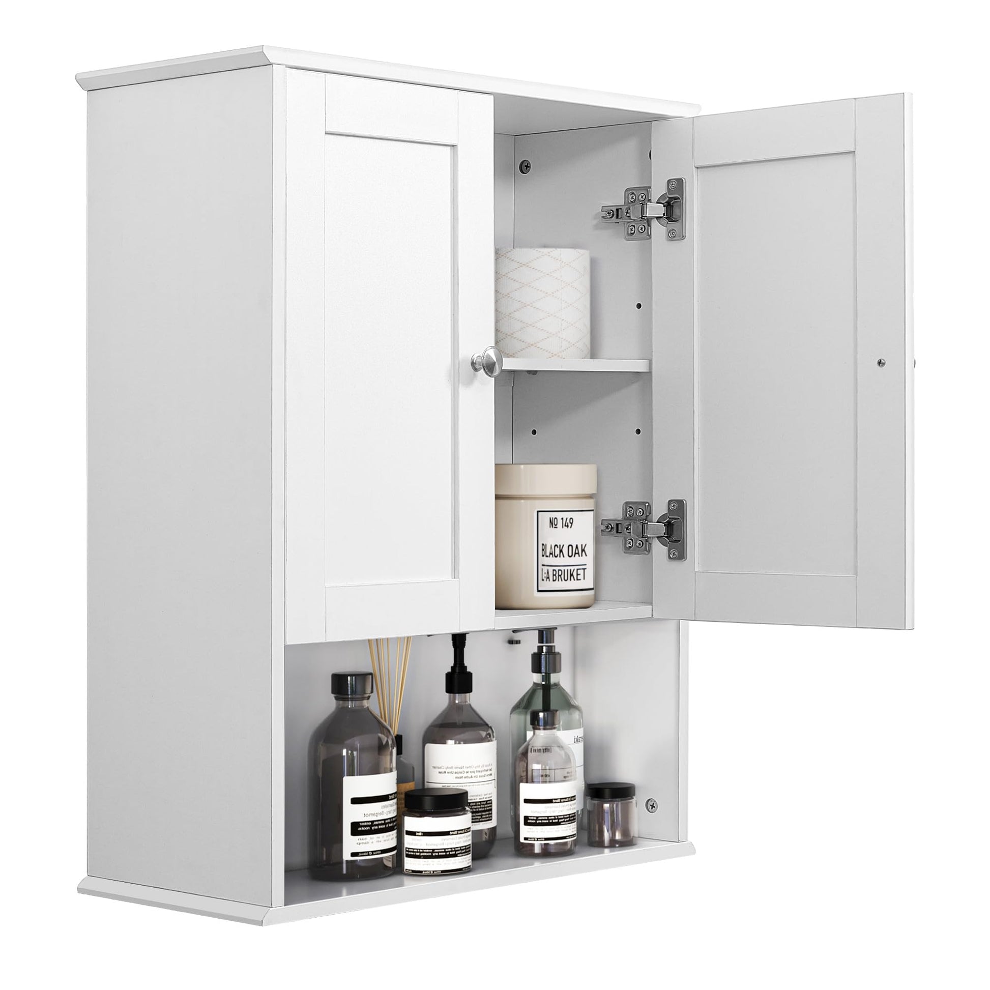 - No Paint Smell Sturdy MDF Wood Wall Cabinet for Long-lasting: This wall mount bathroom cabinet is built with high-quality MDF board which ensures long-lasting durability. It has NO paint smell which is more eco-friendly and healthier. The minimalism design, perfect size, and exquisite construction make the wooden white bathroom medicine cabinet above the toilet versatile with all kinds of wall and room decorations. Good wall hanging bathroom cabinets for laundry living room entryway & Balcony