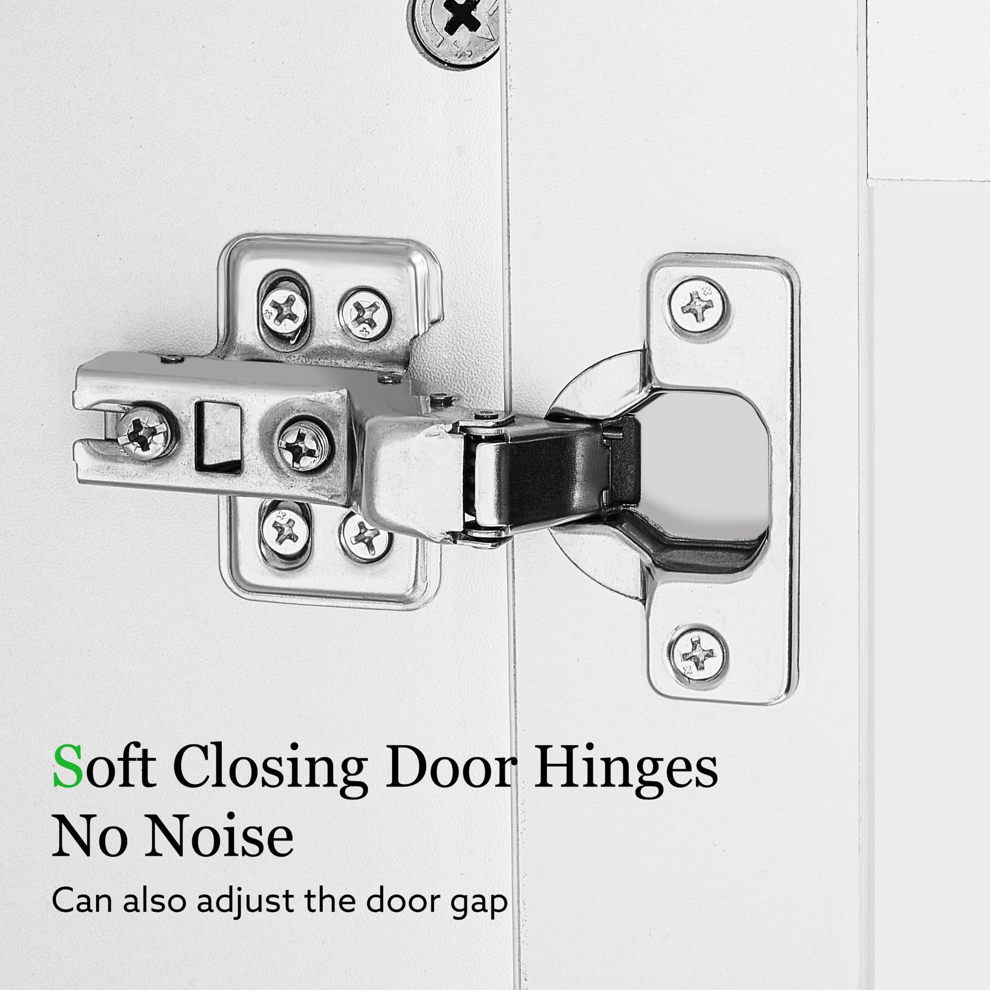 - High-end Bathroom Medicine Cabinets for wall with Soft Door Hinges and Convenient Silver Handle: This wall-mounted medicine cabinets for bathroom uses high-end buffering hinges that leave the door open and shut smoothly without any noise. It can be very easy to adjust the door gap to best match while installing. This wall mount bathroom storage cabinet over the toilet equips silver round smooth metal knobs for easy opening and closing the small wall cabinet