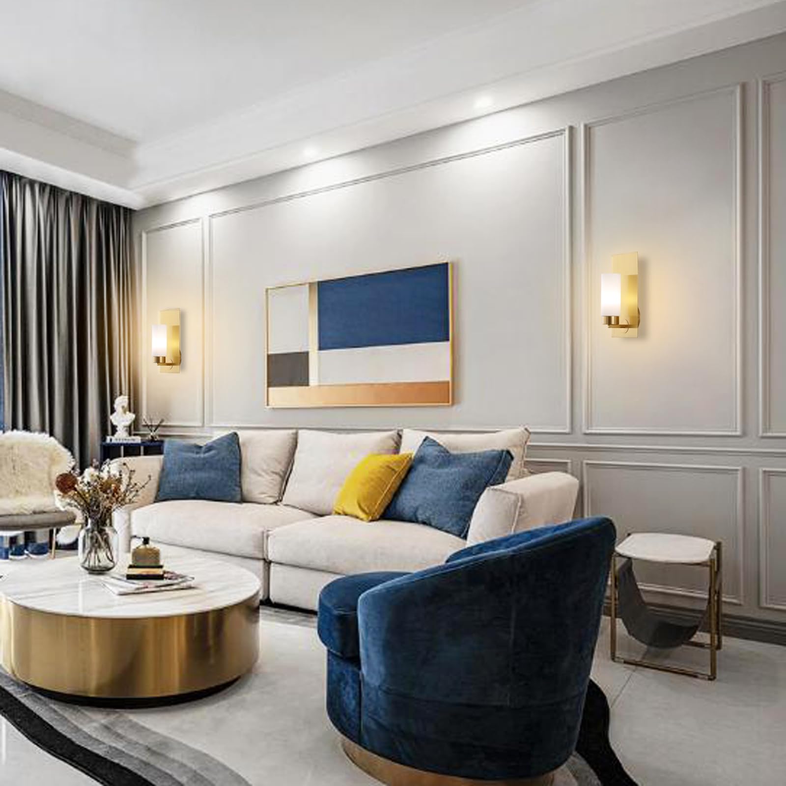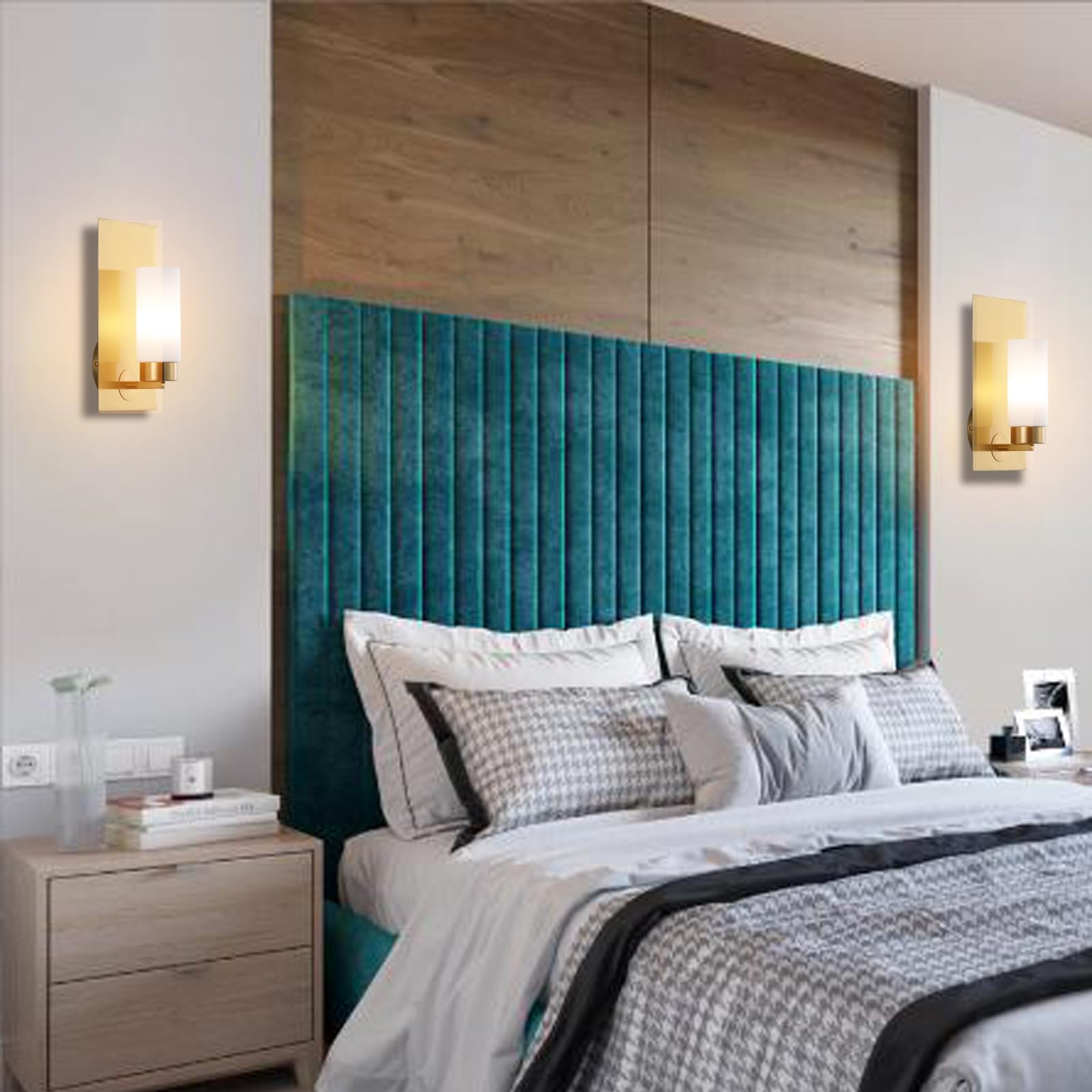 - Modern wall sconces is crafted from brushed brass finish high-quality metal with cylinder milky white glass shades that adopt the traditional hand glass blowing , releasing bright light effect. No need to worry about getting oxidation and color fading. providing excellent light transmission to illuminate various spaces in your home. Perfect for mid-century decoration styles and combines the contemporary and vintage industrial style.