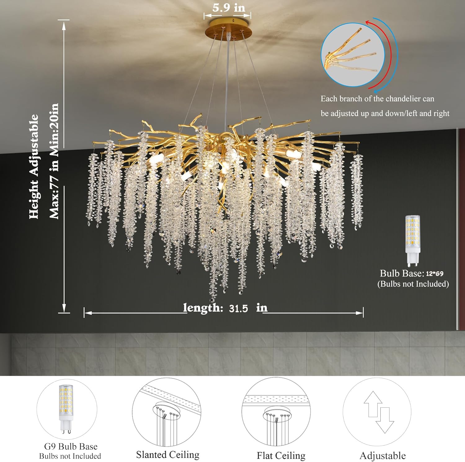 - Tree Branch Chandelier Light Source:Bulbs not included,Require 12 x G9 bulbs,Recommend Warm white light light,Dimmable available when use dimmer bulbs with matched dimmer switch.