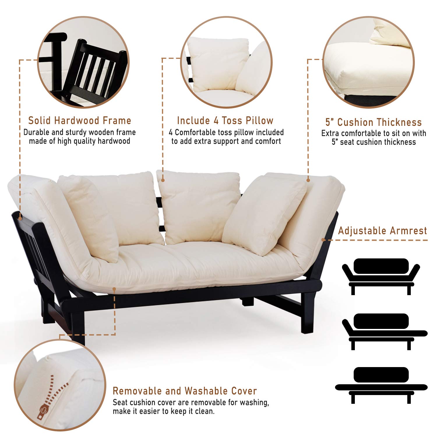 Solid Wood Brion Futon Daybed, Black/Ivory