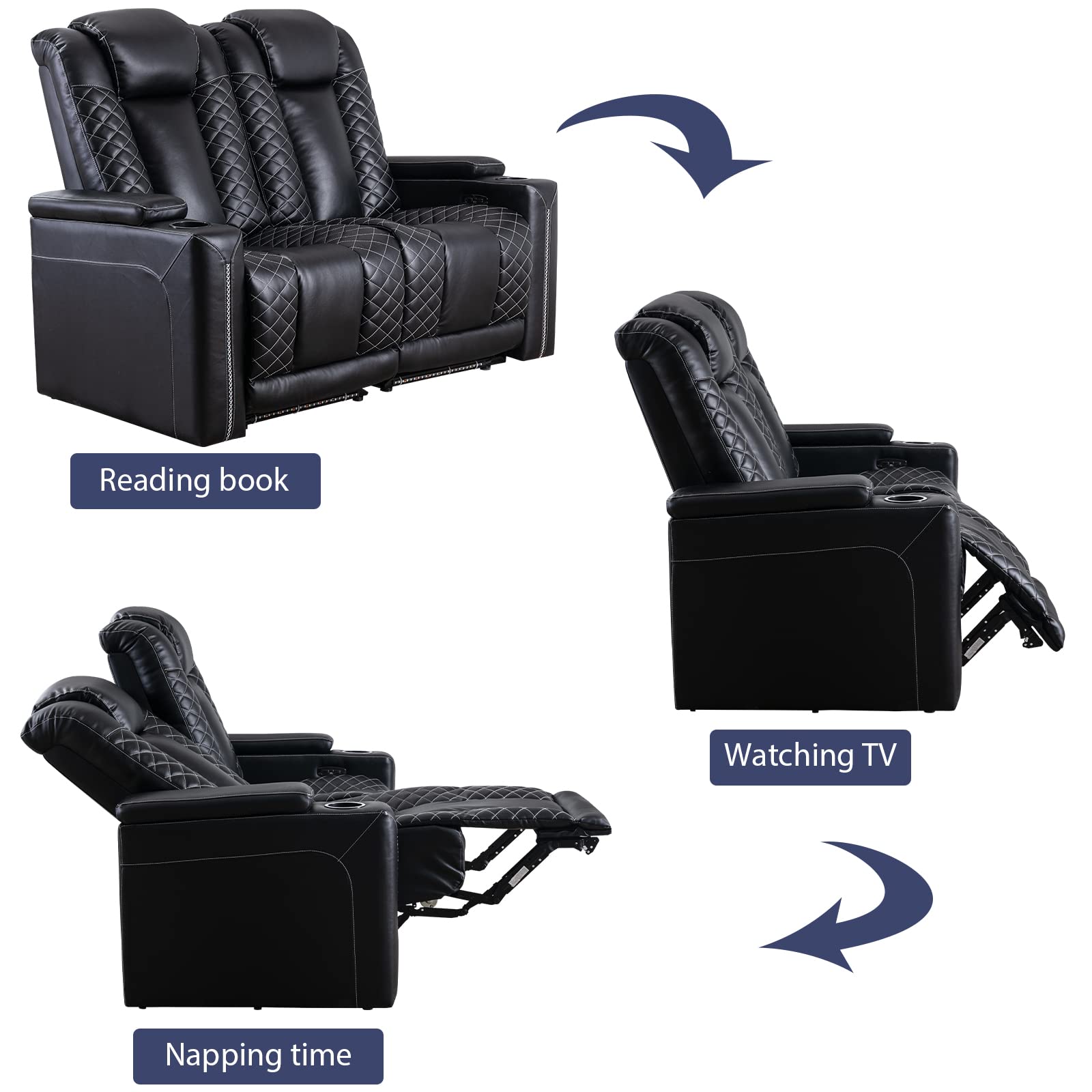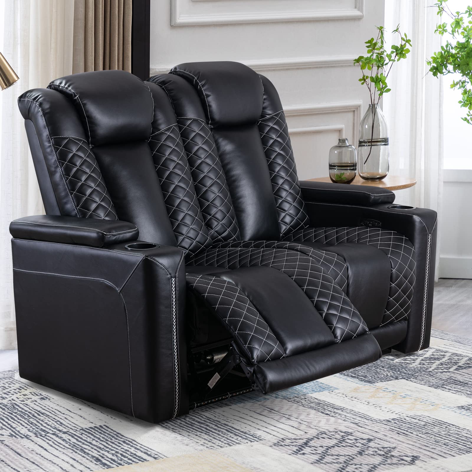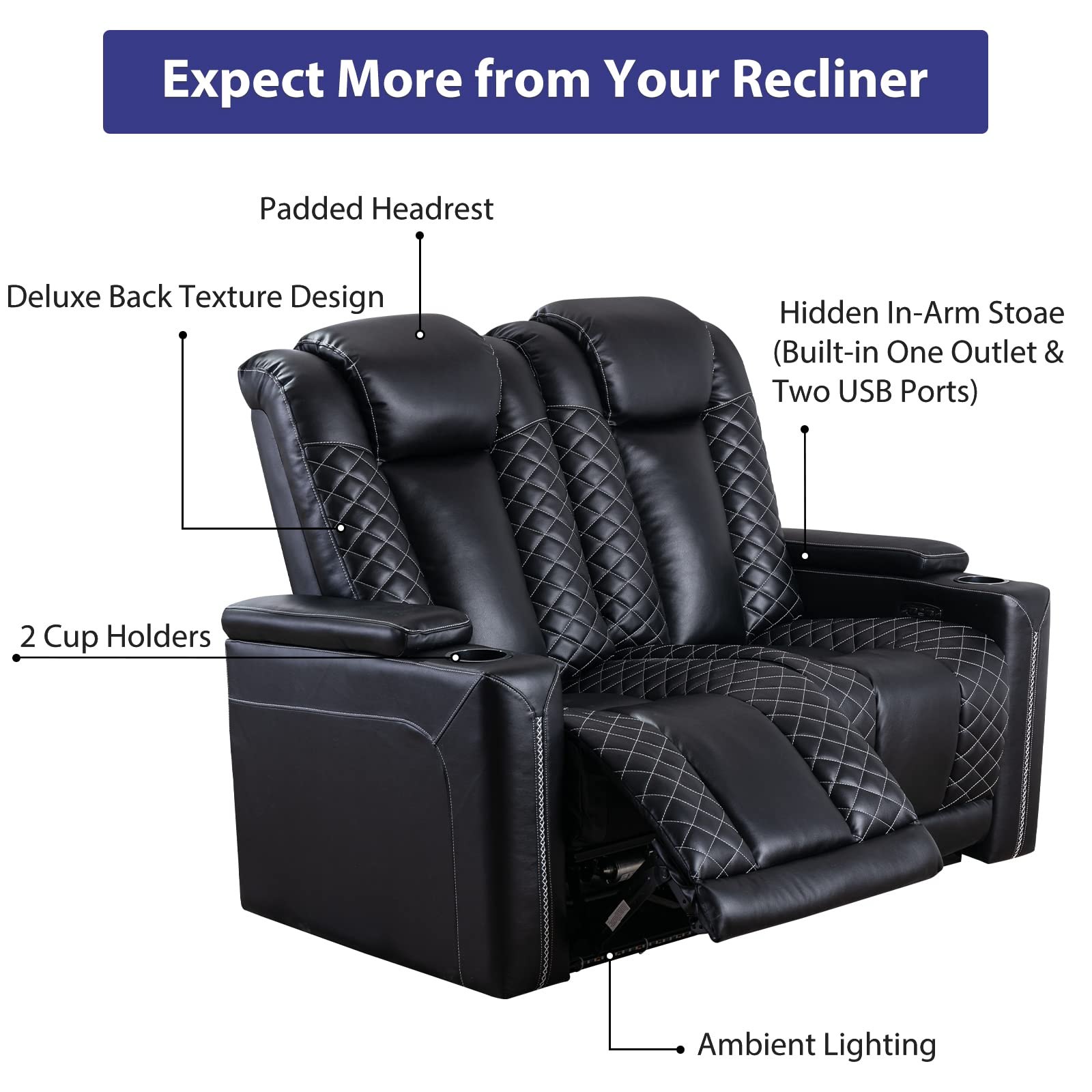 - Power Electric Recliner Loveseat: With overstuffed padding and faux leather material, this loveseat allows you to have a more comfortable sitting feeling. Simple two buttons press activate reclining function with extremely smooth gentle motion. This electric loveseat adopt back texture design, perfect for living rooms, bedrooms, and theater rooms.