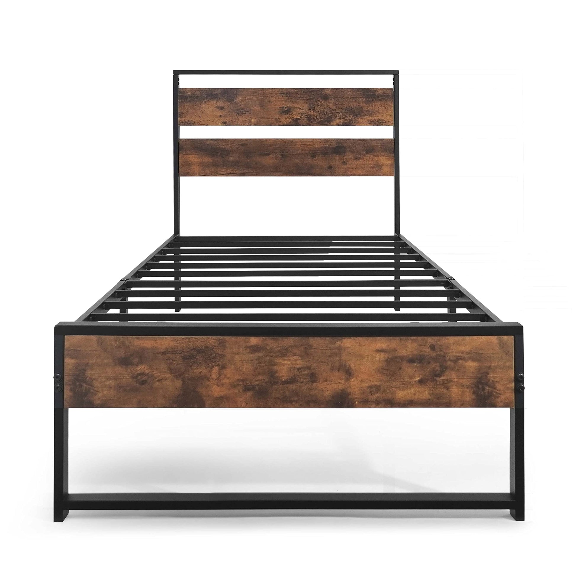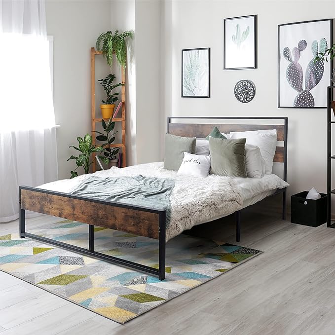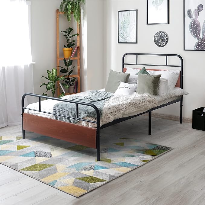 with Wooden Headboard and Footboard, Metal Platform Bed with Premium Steel Frame,