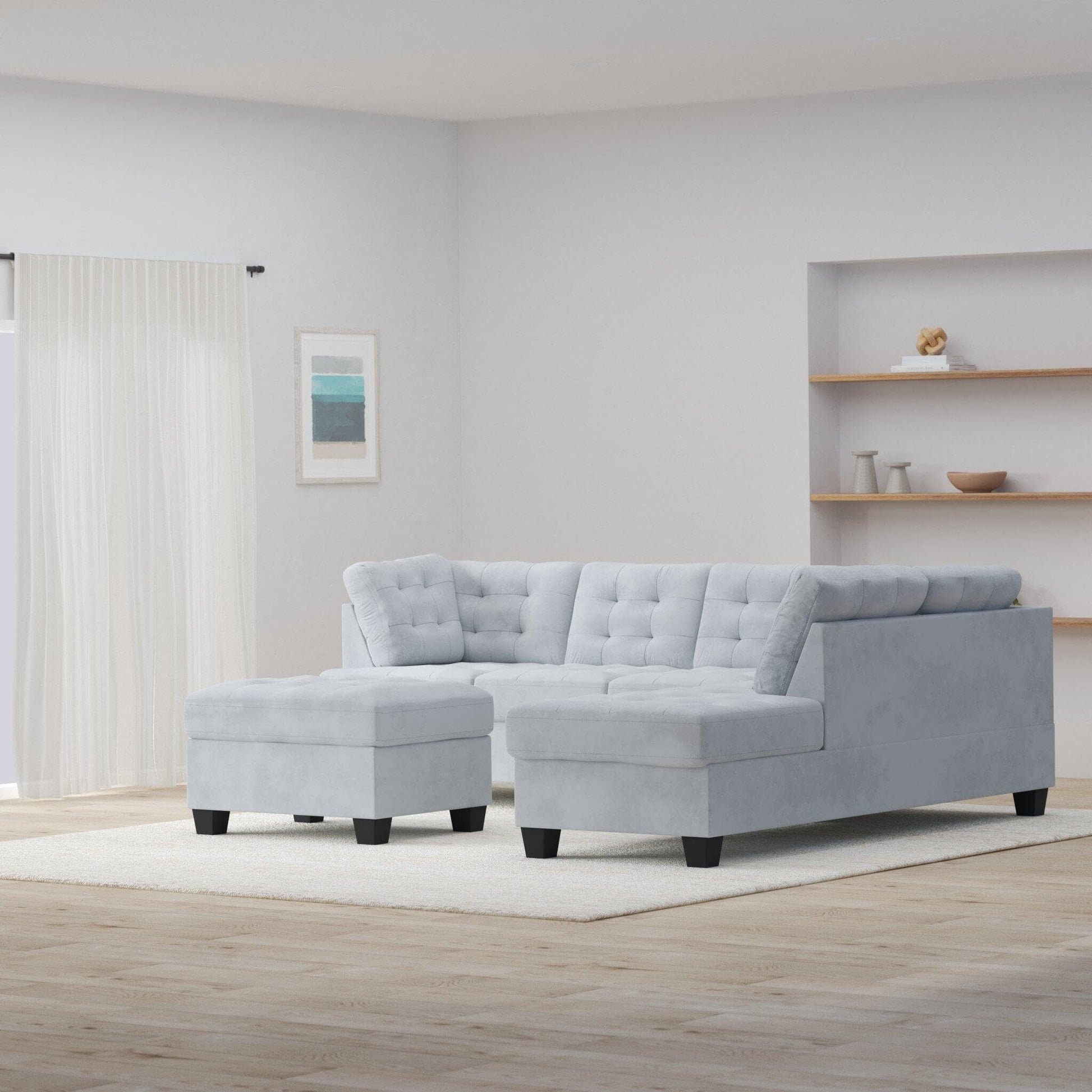 3 Piece Modern Tufted Micro Suede L Shaped Sectional Sofa