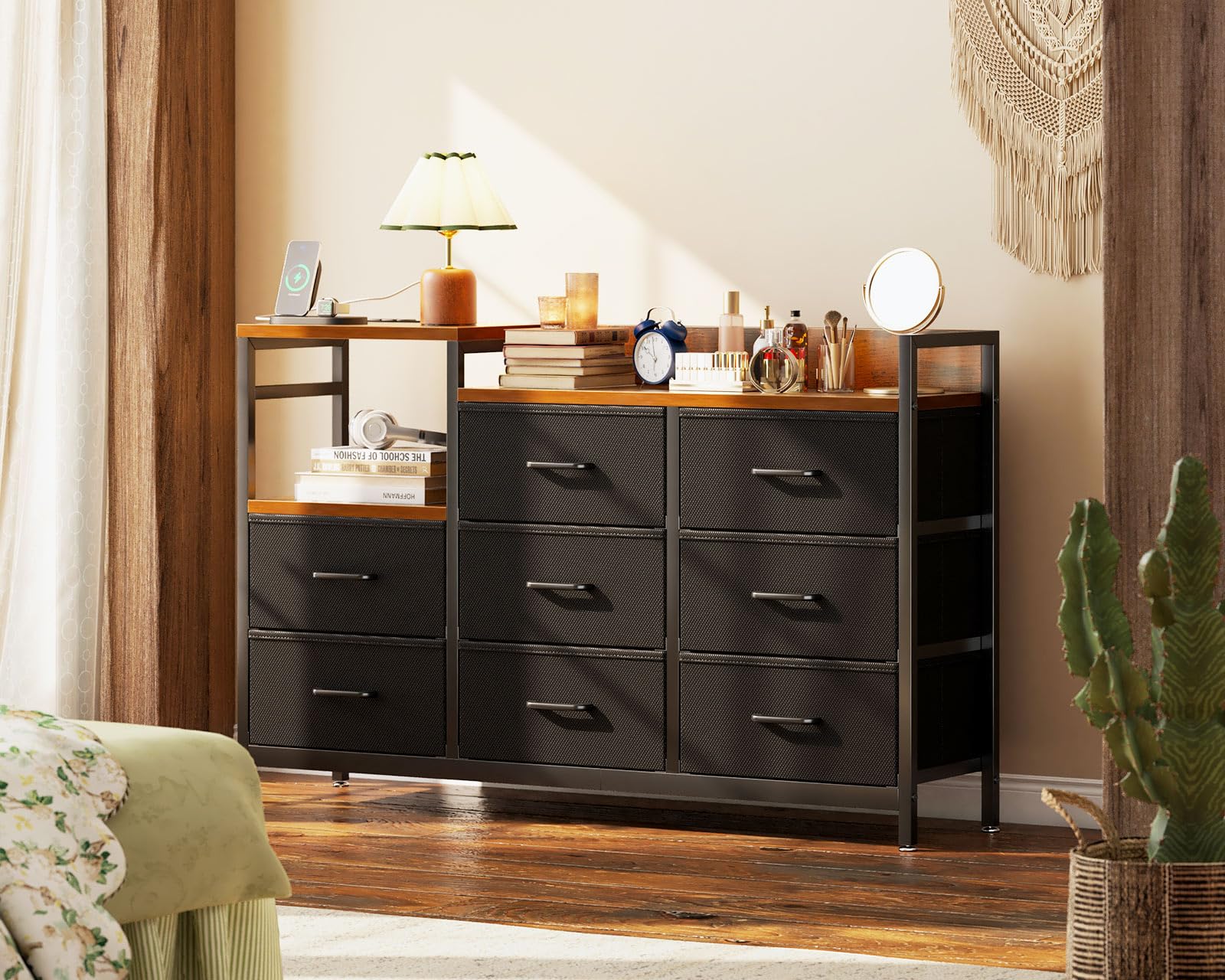 - Boasting 8 large drawers with upgraded cationic fabric, this dresser provides ample and durable space to meet all your storage needs