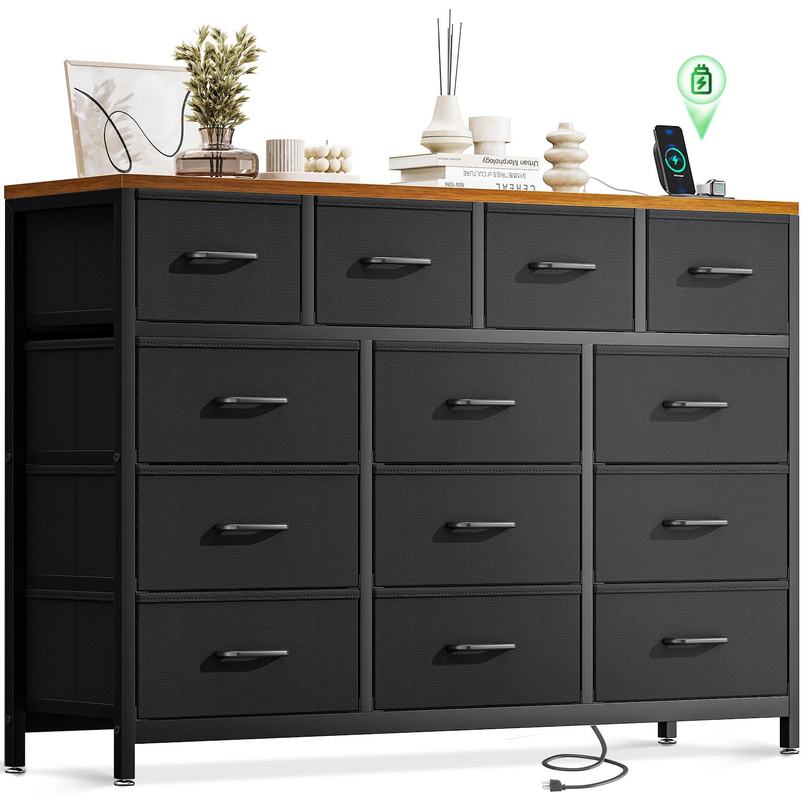 Dresser for Bedroom with Charging Station, 57" Long Dresser with 13 Storage Drawers