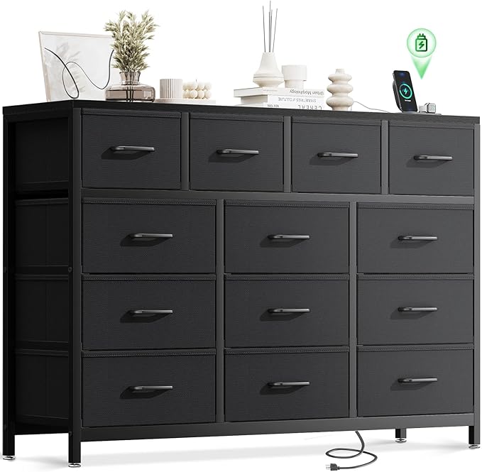 - Features 13 spacious drawers in cationic fabric, this dresser is designed to accommodate all your storage needs