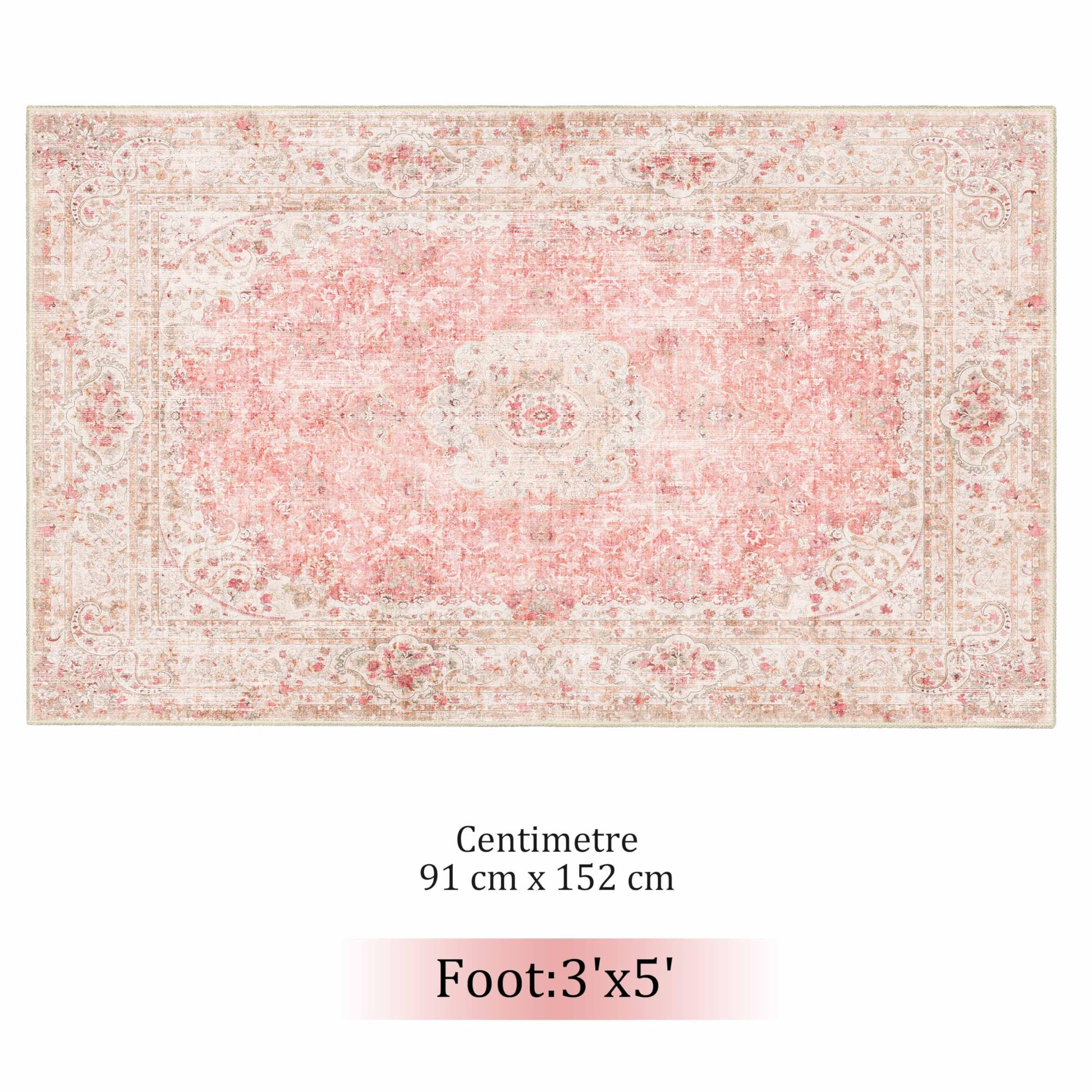 Pink Rug 3x5,Washable Area Rugs for Bedroom Living Room Kitchen Entryway,