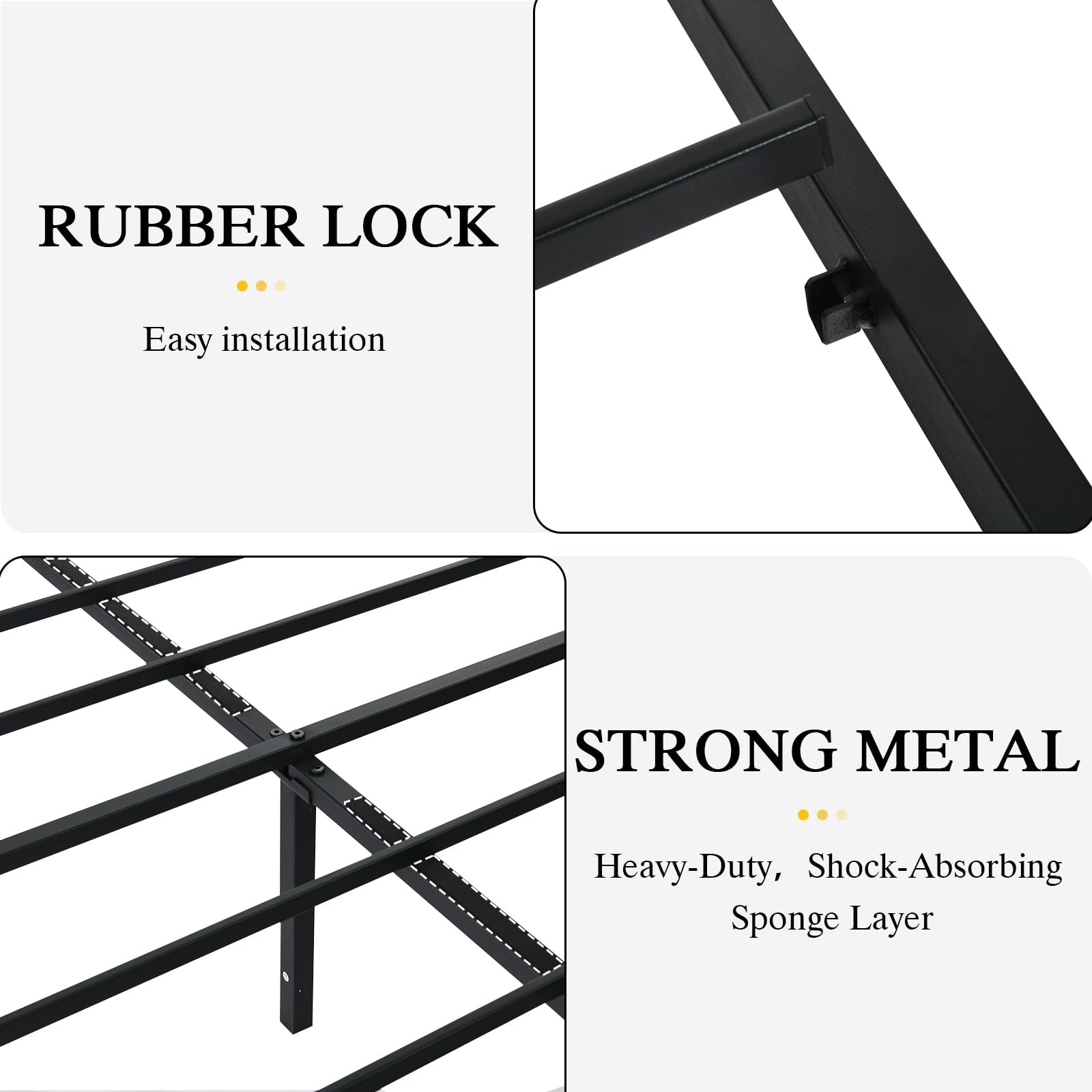 - Metal Structure: Queen bed frames consist of nine legs and heavy metal strips, which increase the stability of the bed frame, prevent bedframe from shaking and making noise, ensure a more comfortable sleep