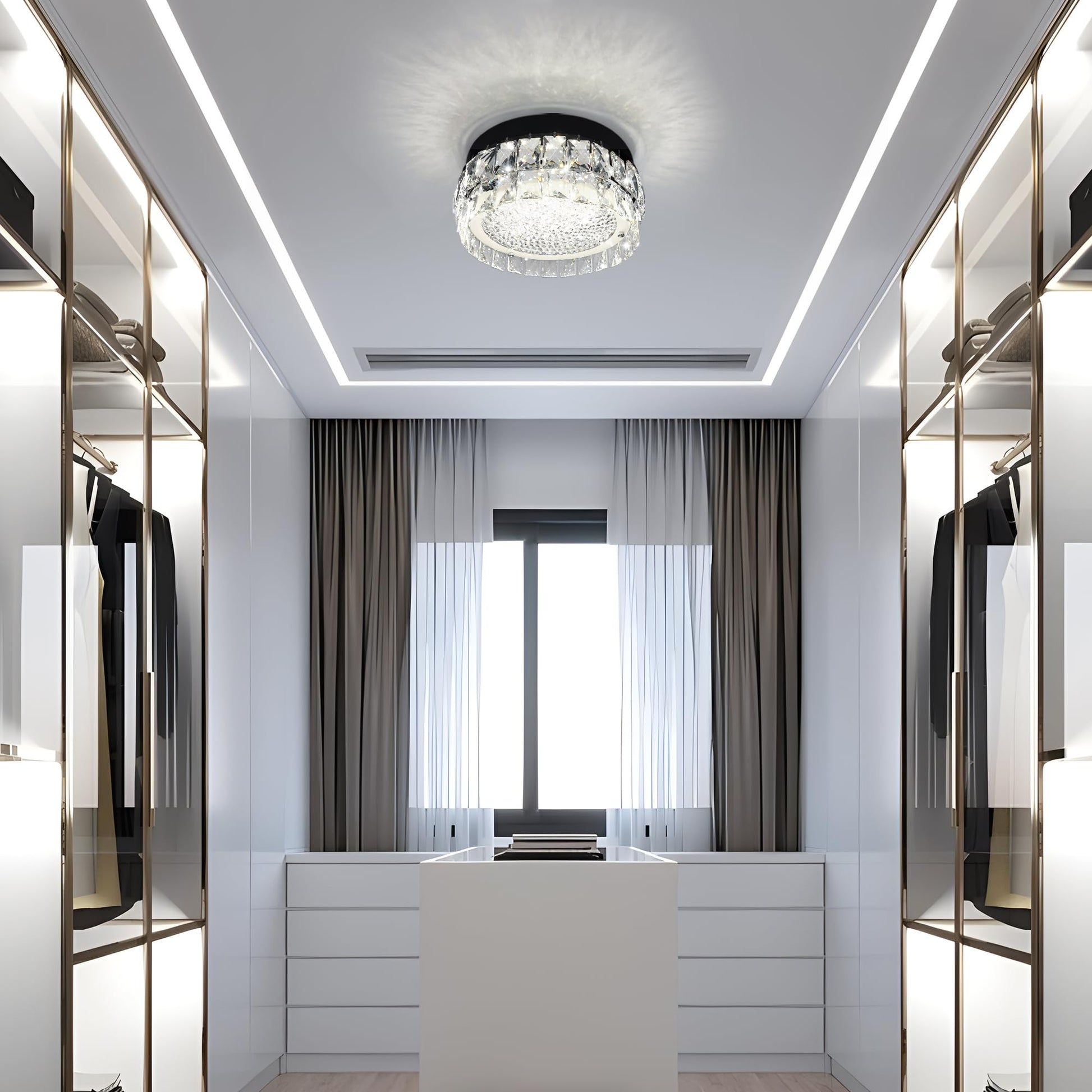 - K9 Crystal Chandeliers : The closet light fixture came with shinning crystal instead of acrylic, with clear edges and corners, it's free of impurities. The closet chandelier is resistant to high temperatures and will not turn yellow, crystal clear, and refracts charming light, is far more gorgeous than the picture