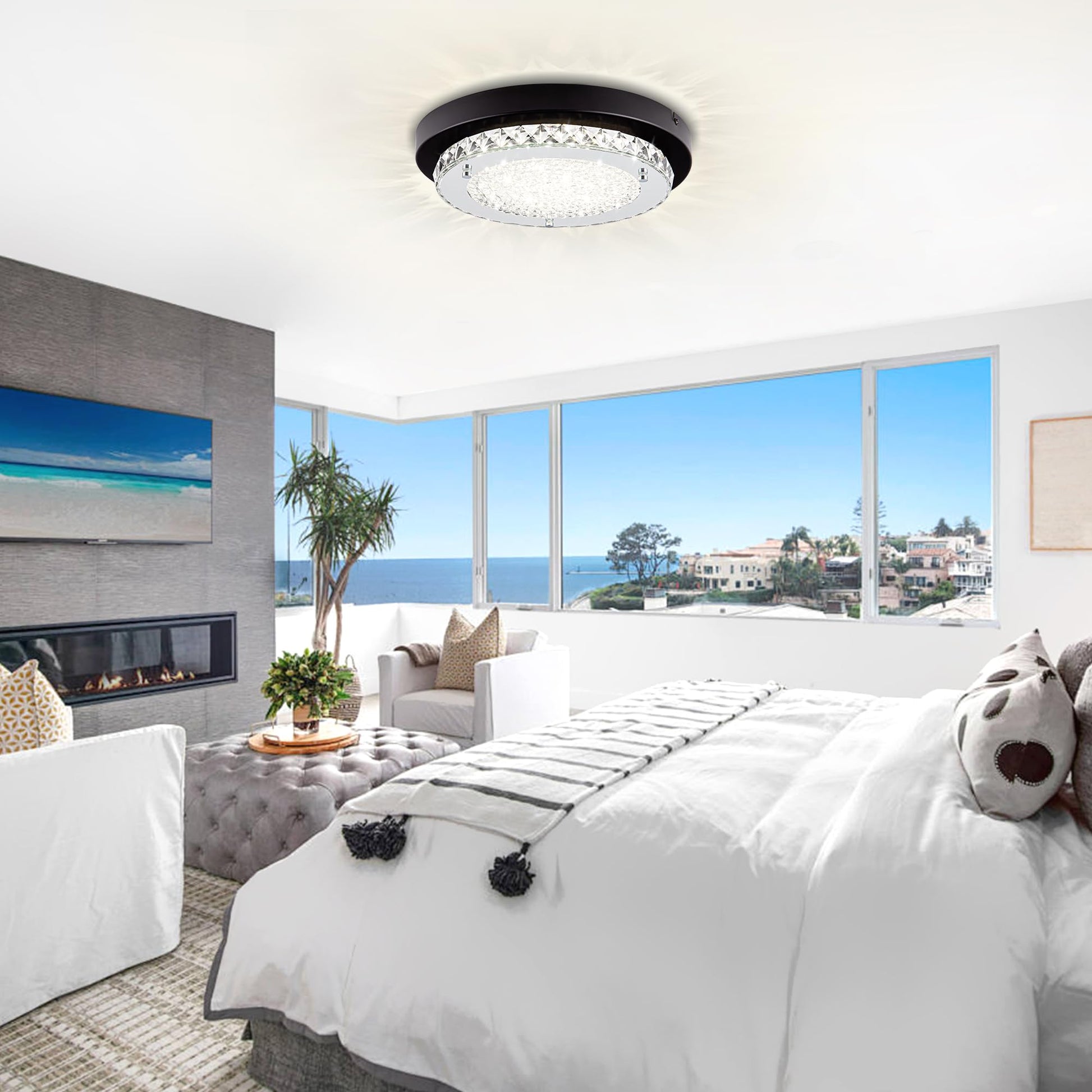 - The crystal ceiling light is made of K9 crystal, mirror glass and high grade metal. Ceiling lights for living room can meet your needs in a variety of scenes, such as bedroom, dining room, kitchen, attic, stairs, corridor, porch, entrance, etc. The LED ceiling light flush mount can provide soft light, making your home more luxurious and creating an elegant atmosphere. Bathroom ceiling light fixtures is also a bedroom lights for ceiling.
