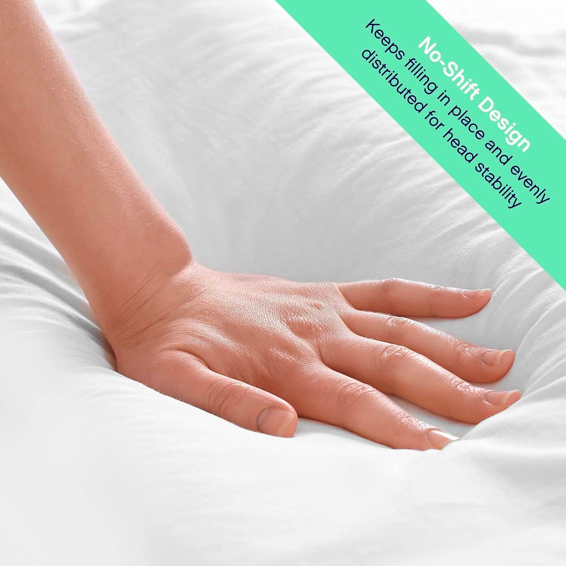 - No-Shift Design: bed pillows won’t shift, bunch up, flatten out, or form craters; No shift design keep fill in place and evenly distributed so that you have a luxurious, incredibly comfortable and stable place to rest your head