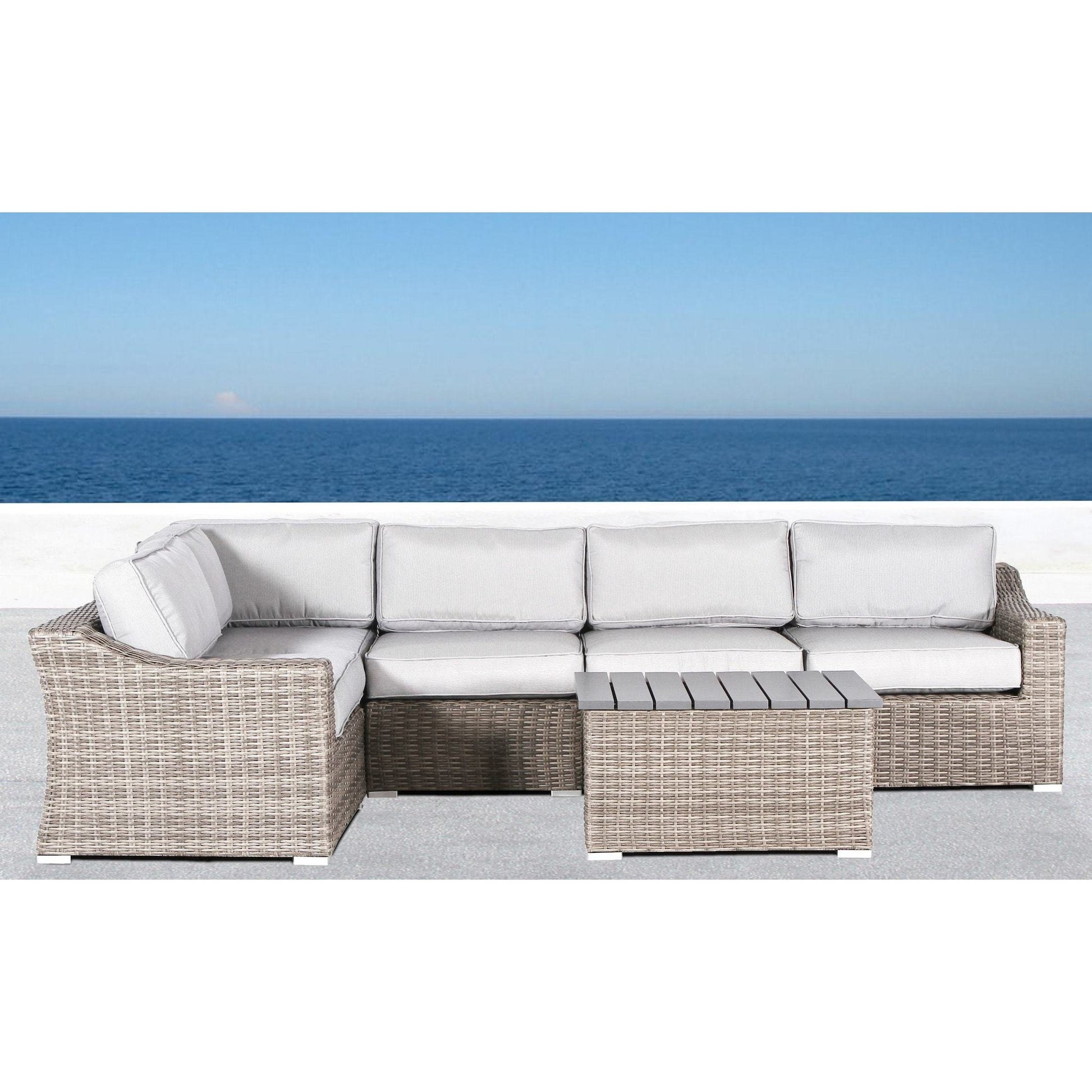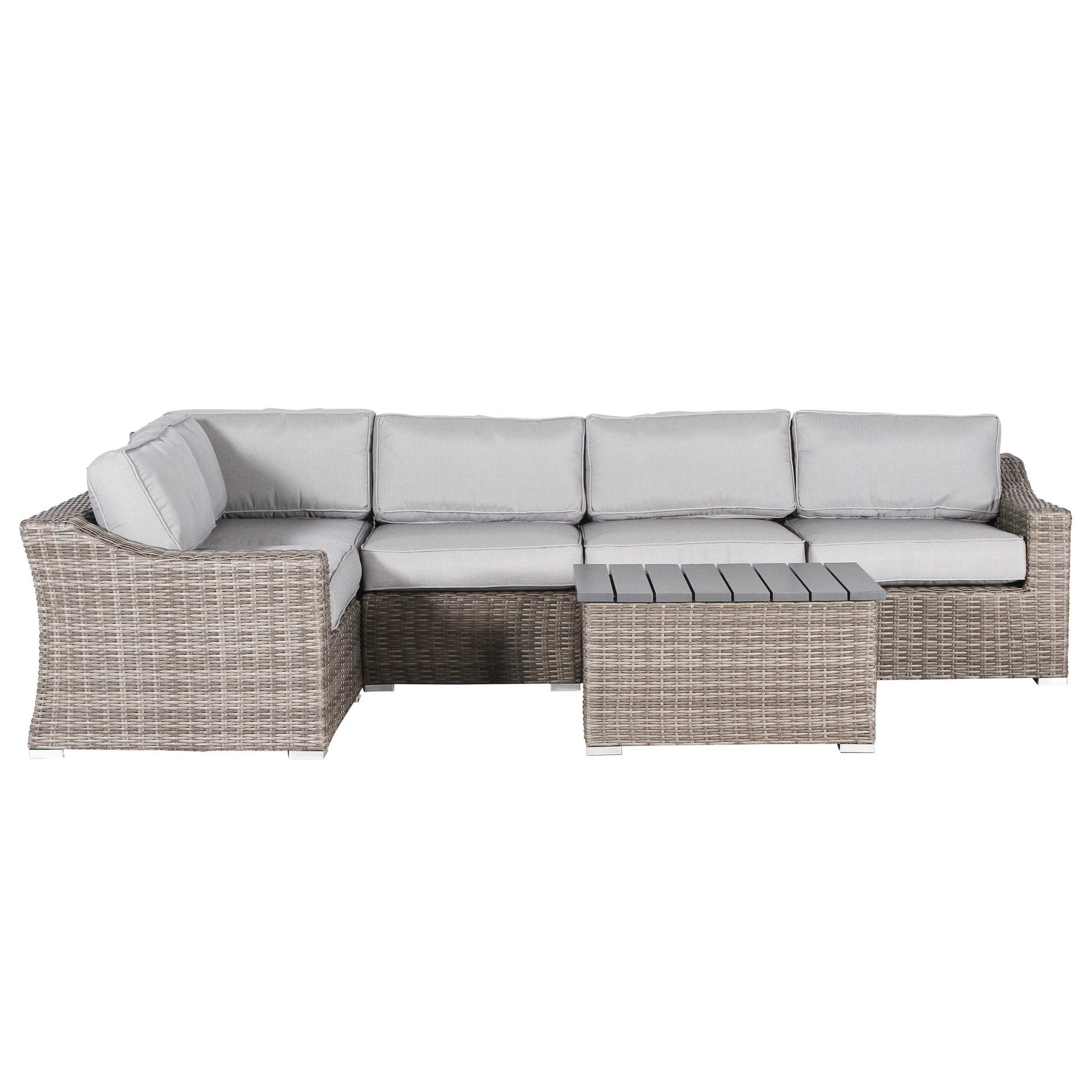 - DURABLE MATERIAL: Constructed with quality aluminum, water resistant fabric and woven grey wicker to ensure a long lasting patio sofa set.