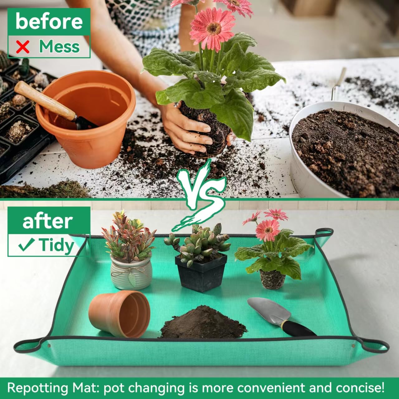 - Cute Repotting Mat:Folded size 20.5" x 20.5", can be used for pot transplanting, fertilizing, changing soil, pruning, watering, nursery, cleaning crafts,avoid the waste of potting soil and mixtures