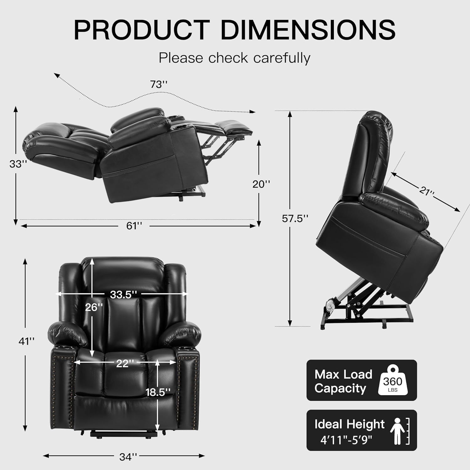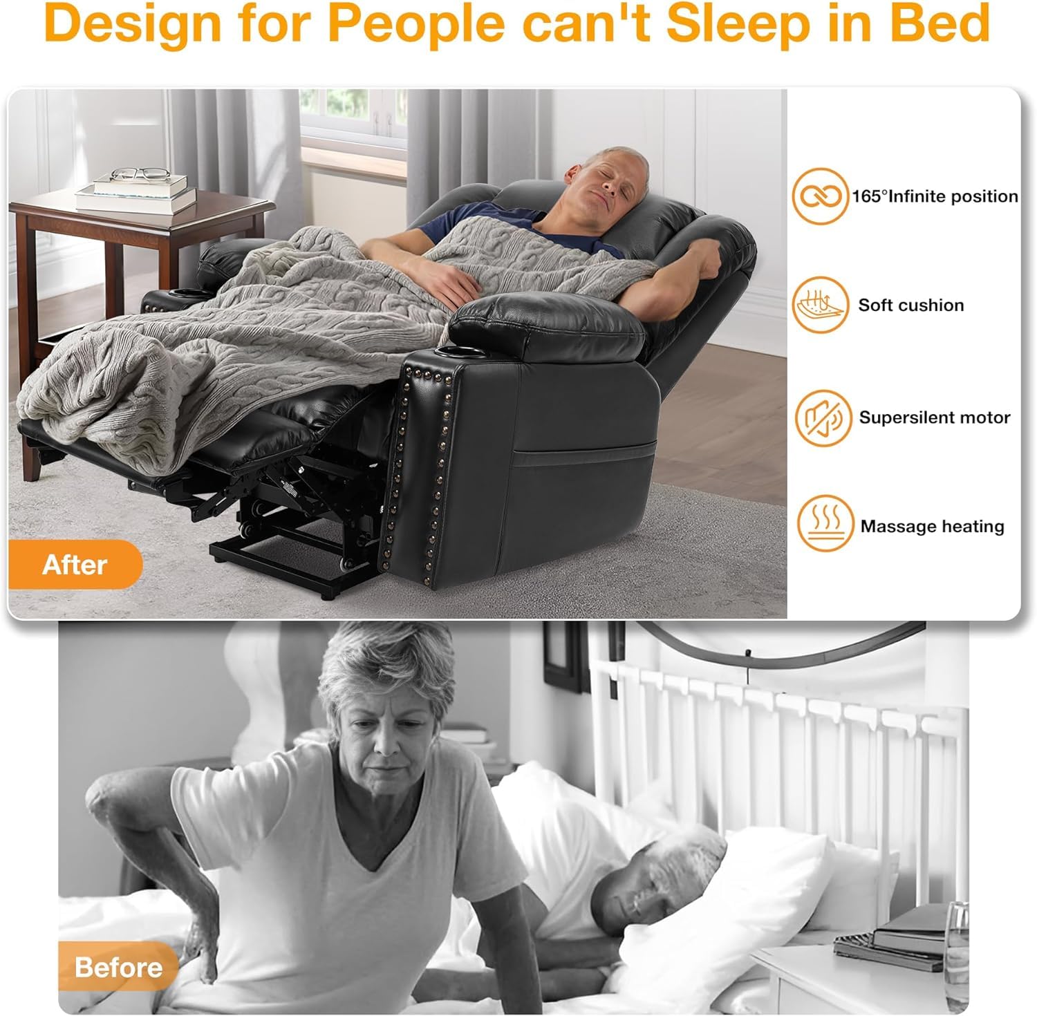 Dual Motor Power Lift Chair Recliner for Elderly with Heat and Massage, Infinite Position