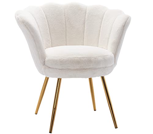 Living Room Chair, Faux Fur Mid Century Modern Retro Leisure Accent Chair with Golden Metal Legs, Vanity Chair for Bedroom Dresser, Upholstered Guest Chair(Soft White)