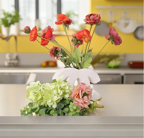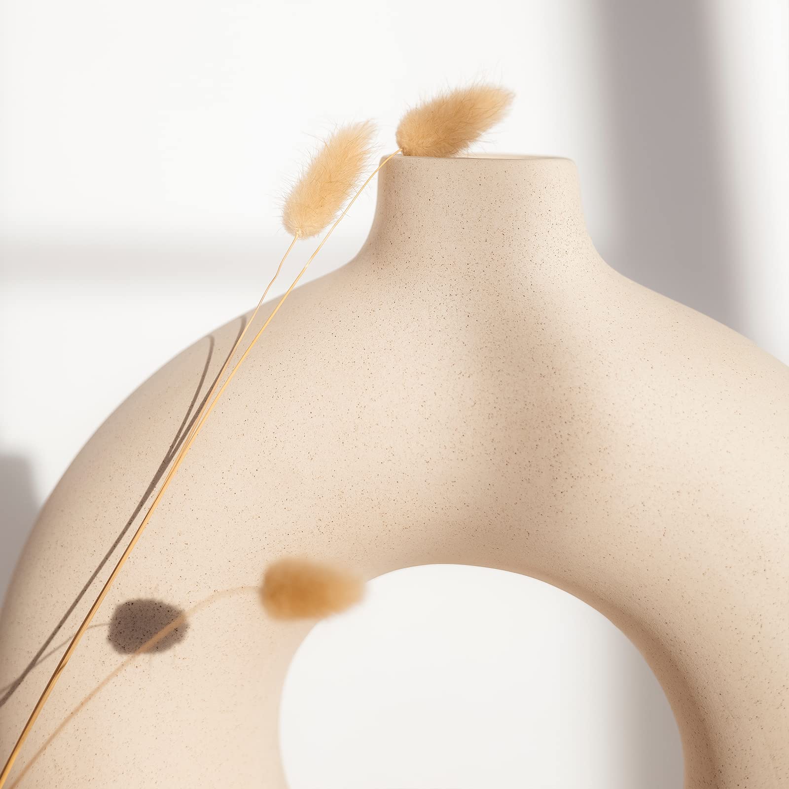 - Minimalist abstract design - If the ordinary vase design doesn't attract you, you will be attracted by this white ceramic vase for living room decor. The donut design gives the vase a modern feel and adds more romance and style to your house