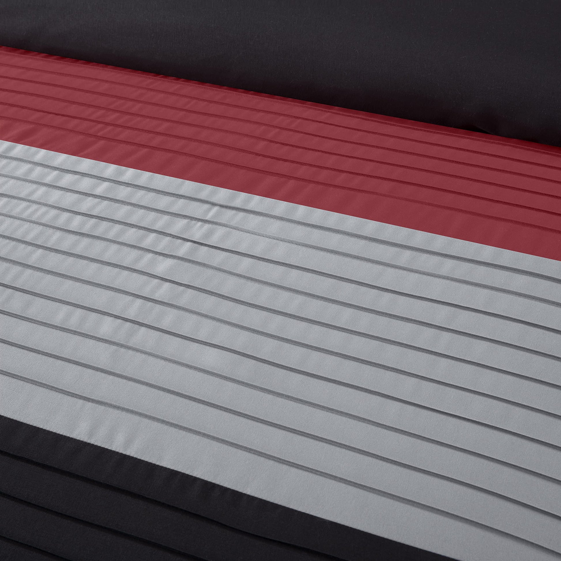 - Luxurious pleated stripes which accent the bedroom décor with a touch of class. Bold eye-catching rich and vibrant three-tone color choices to easily coordinate with any bedroom decors