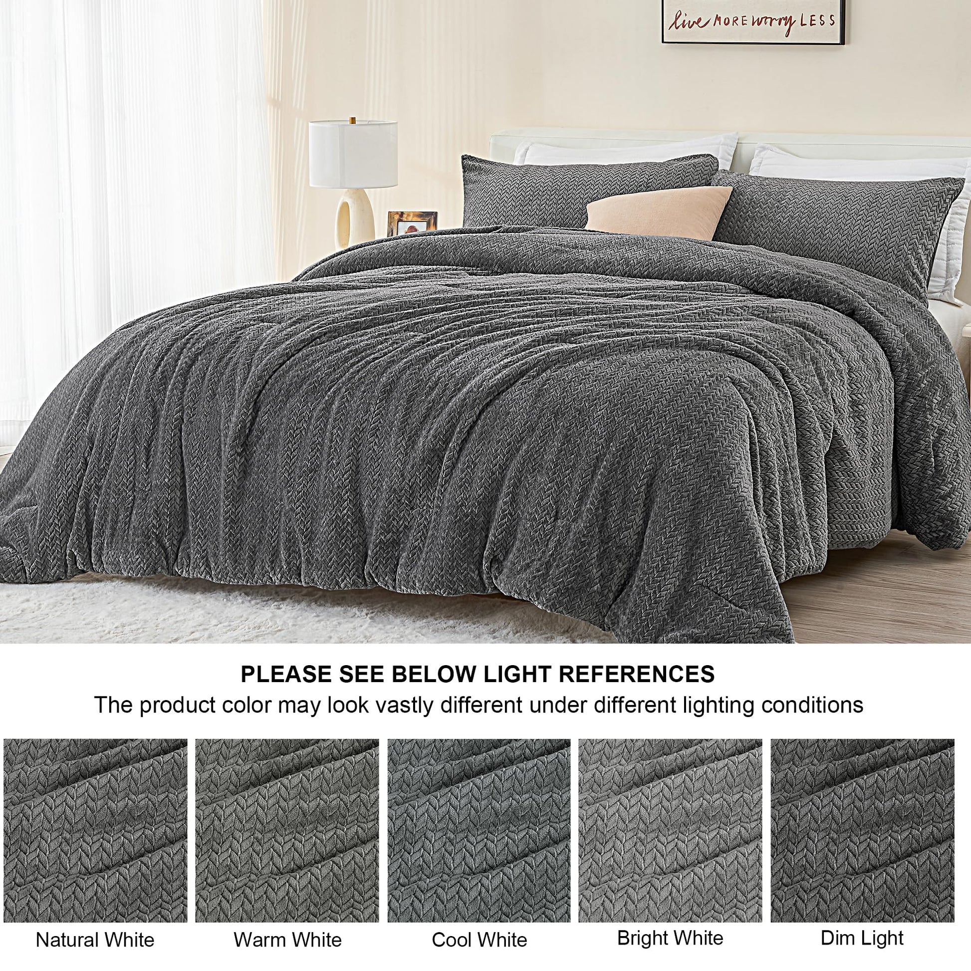 Fluffy Comforter Set - Furry Leaves Pattern Faux Fur Bed Set, Winter Ultra Soft Fuzzy