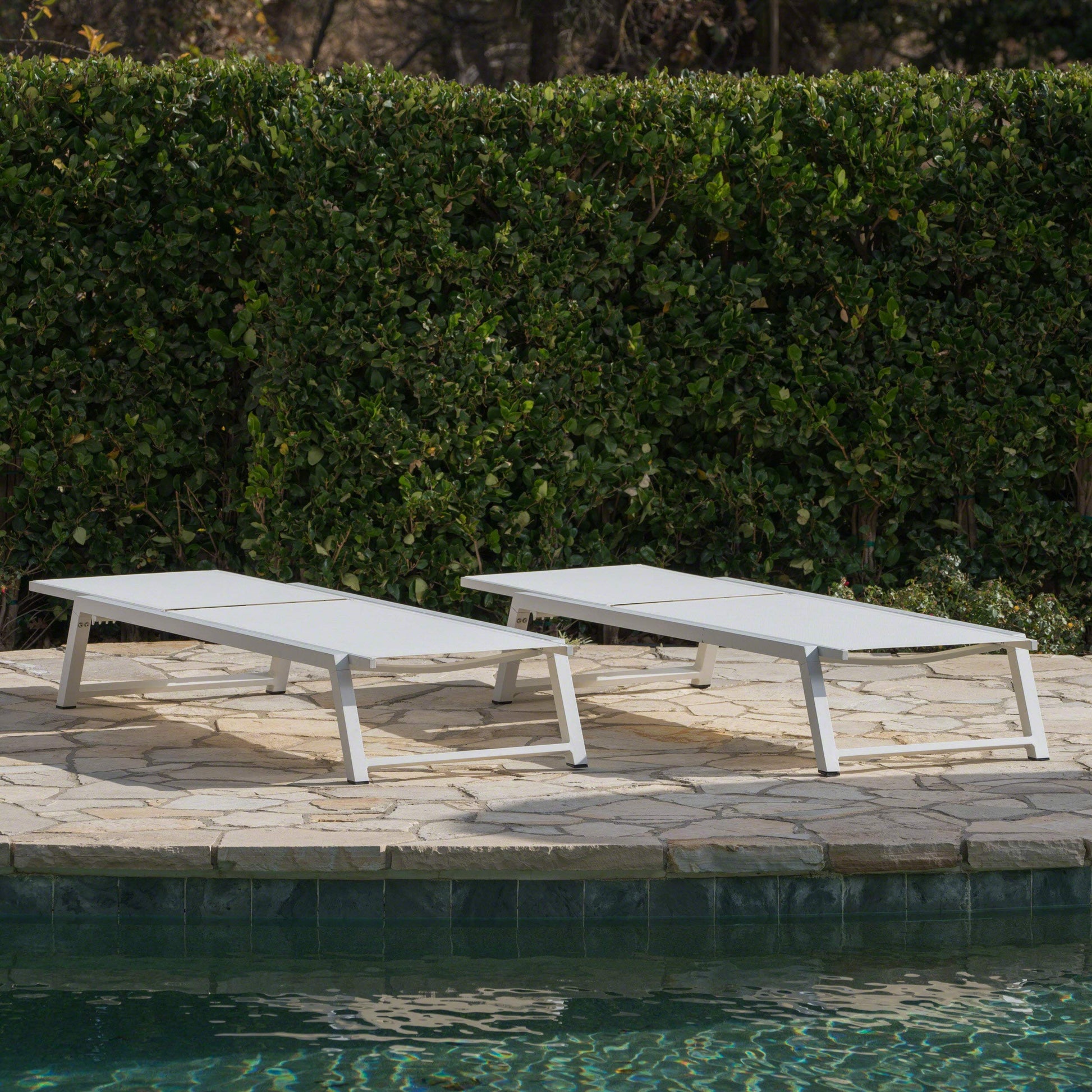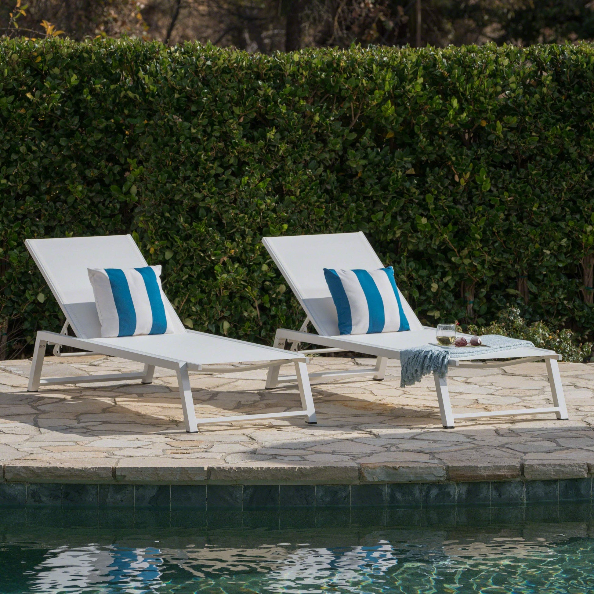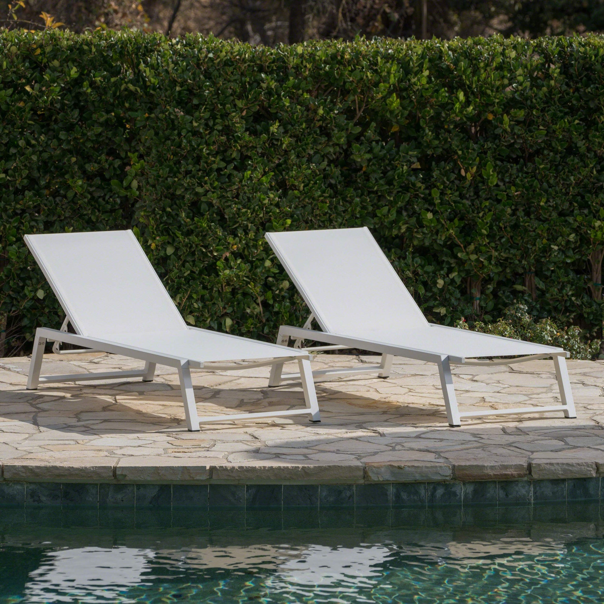 Belle Outdoor Mesh Chaise Lounges, 2-Pcs Set, White Mesh / White