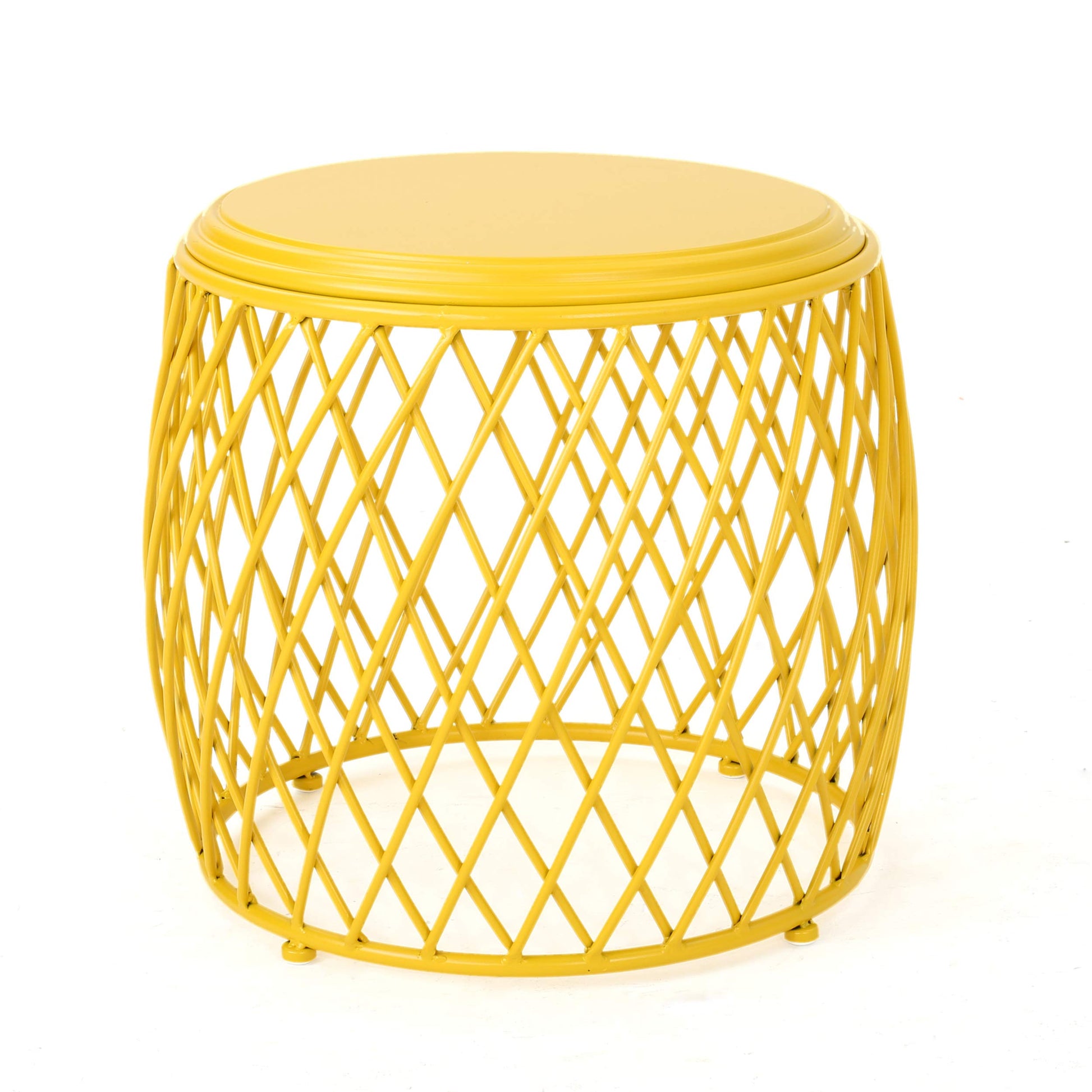 Bryony Indoor 19" Diameter Lattice Iron Side Table, Matte Yellow