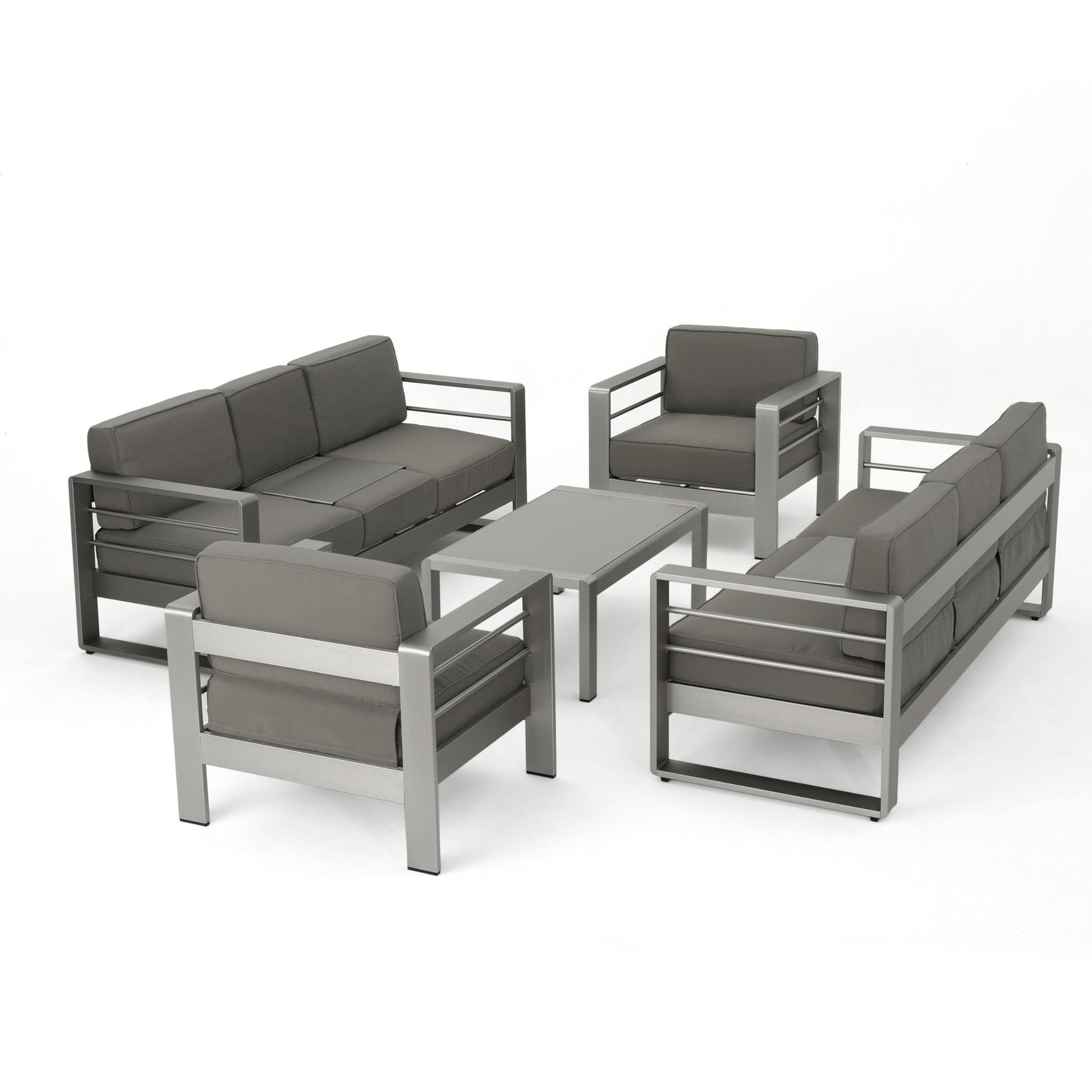 - The crested Bay sofa Set Brings a modern feel to any outdoor living space. With its unique eye-catching design This set offers taste and Functionality to you and your guests. The sets combination of natural and industrial elements compliments any style of decor