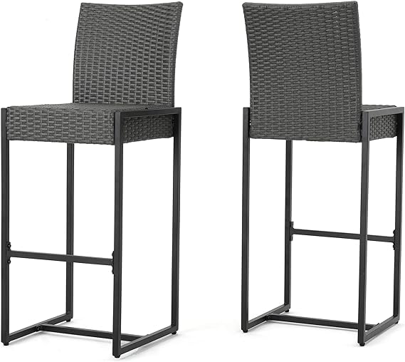 - Featuring top-quality wicker and a powder-coated iron frame, these sleek barstools not only look good on their own but also as part of any patio set you currently have