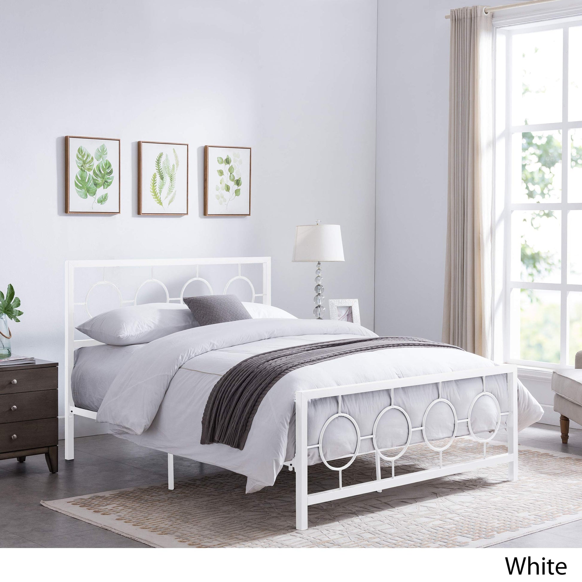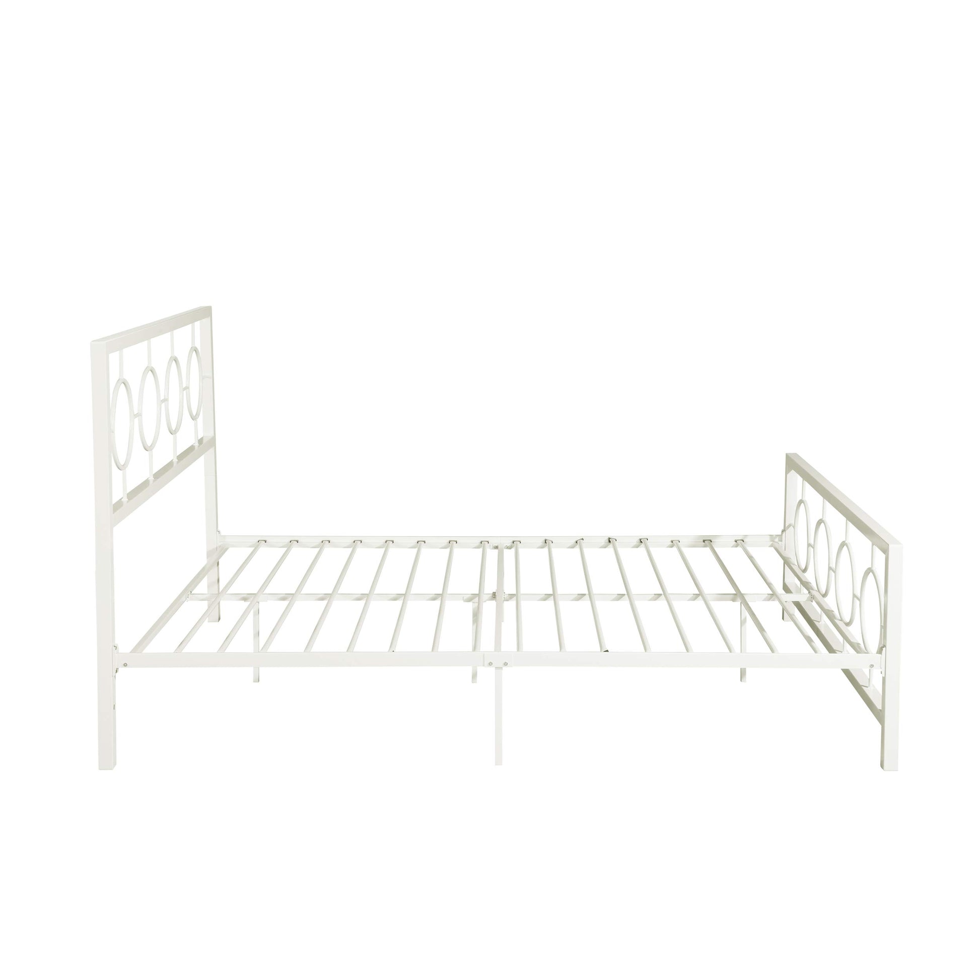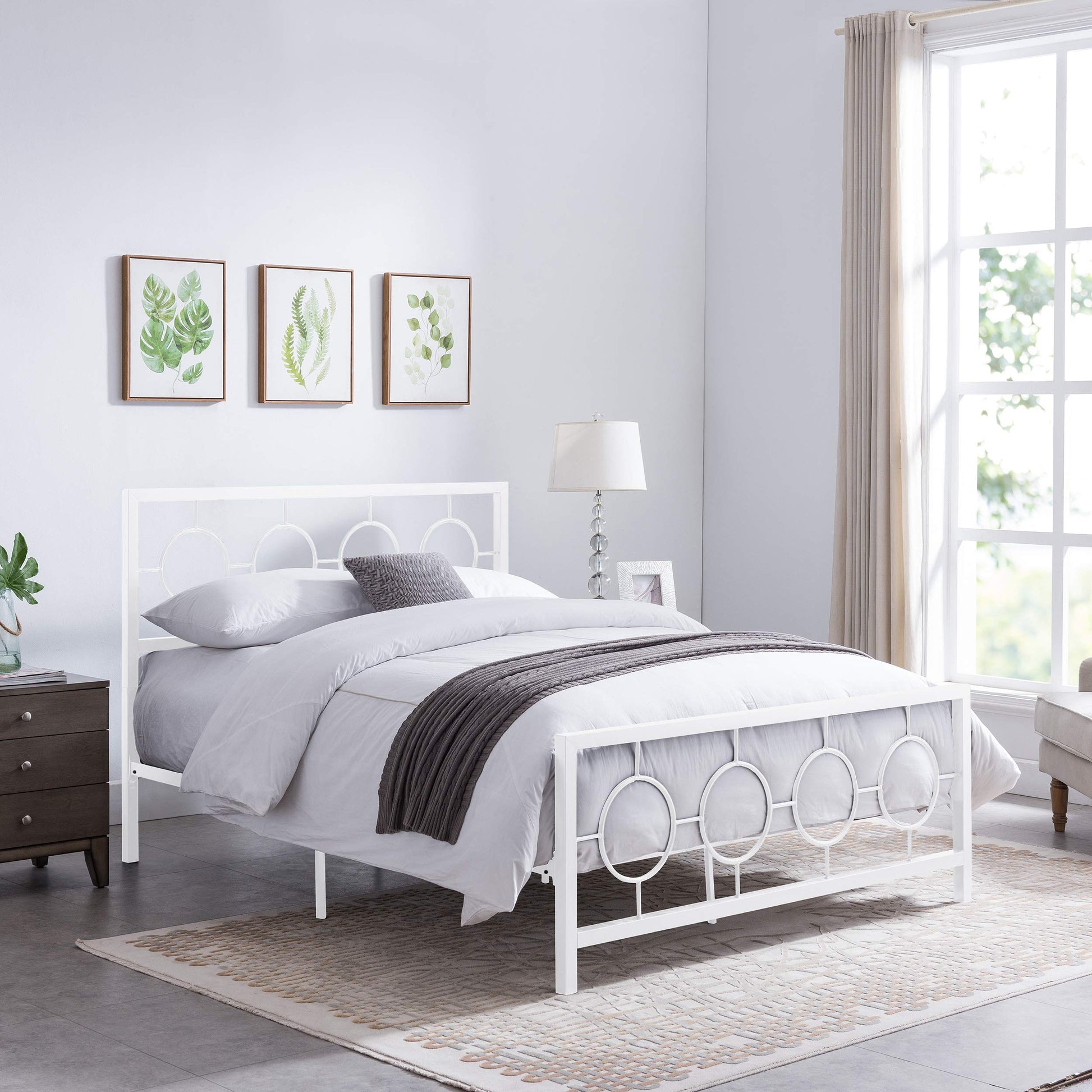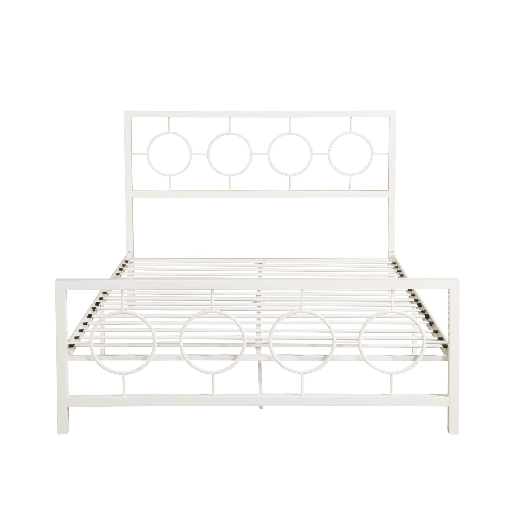 - Modern design - this bed frame's hardy iron frame includes eight circular geometric accents
