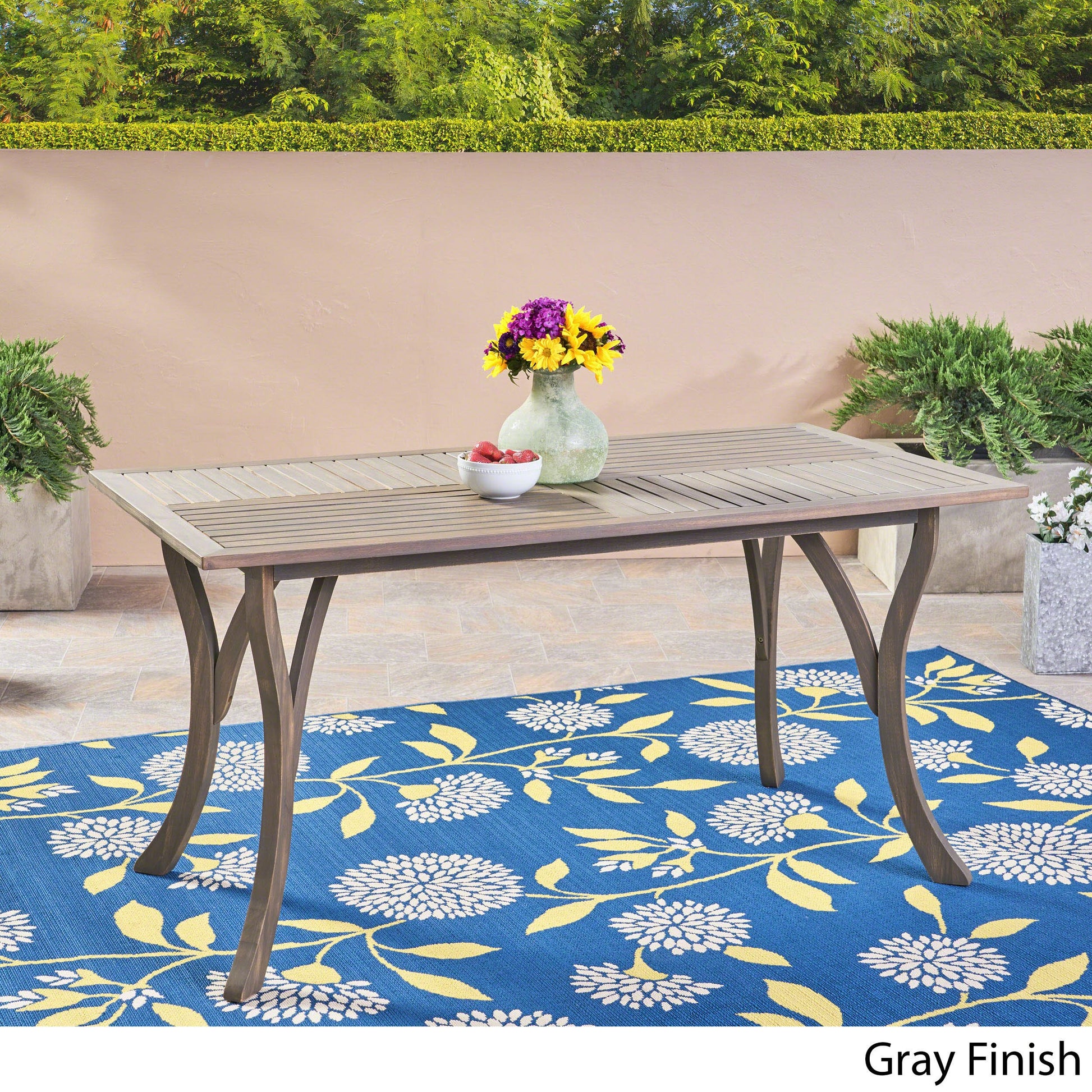 Jaden Outdoor Acacia Wood Rectangular Dining Table, Gray