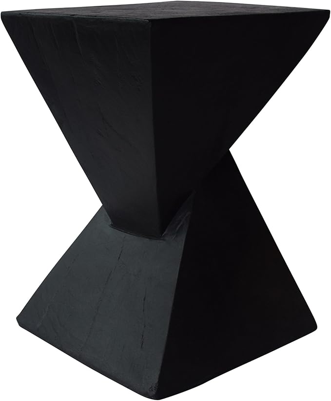 - Bring both your outdoor and indoor space to life with our end table that features an abstract hourglass structure and a wood-like finish. With charming aesthetics, this side table will be sure to enliven any space.