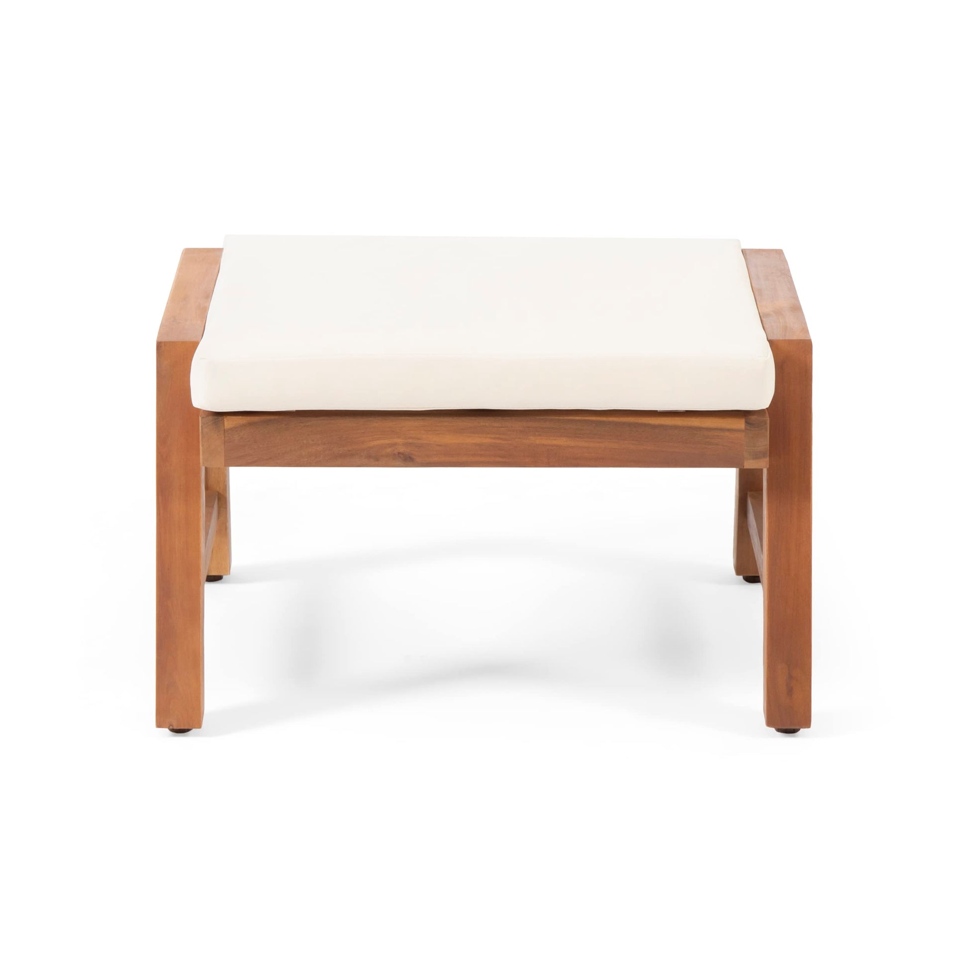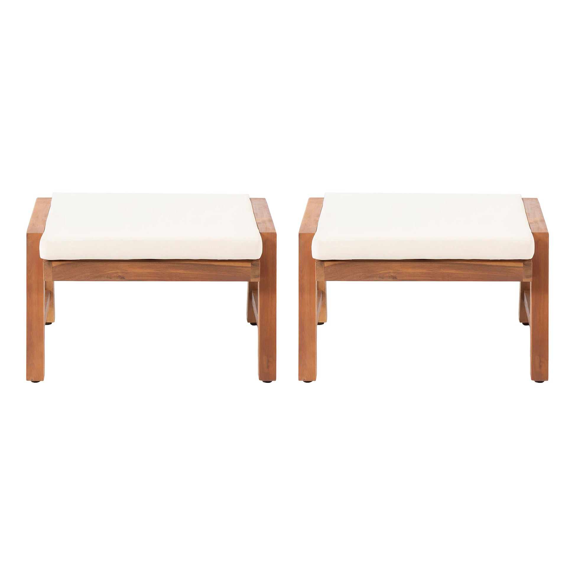 Temecula Outdoor Ottomans with Cushion (Set of 2) - Acacia Wood - Brown/Cream