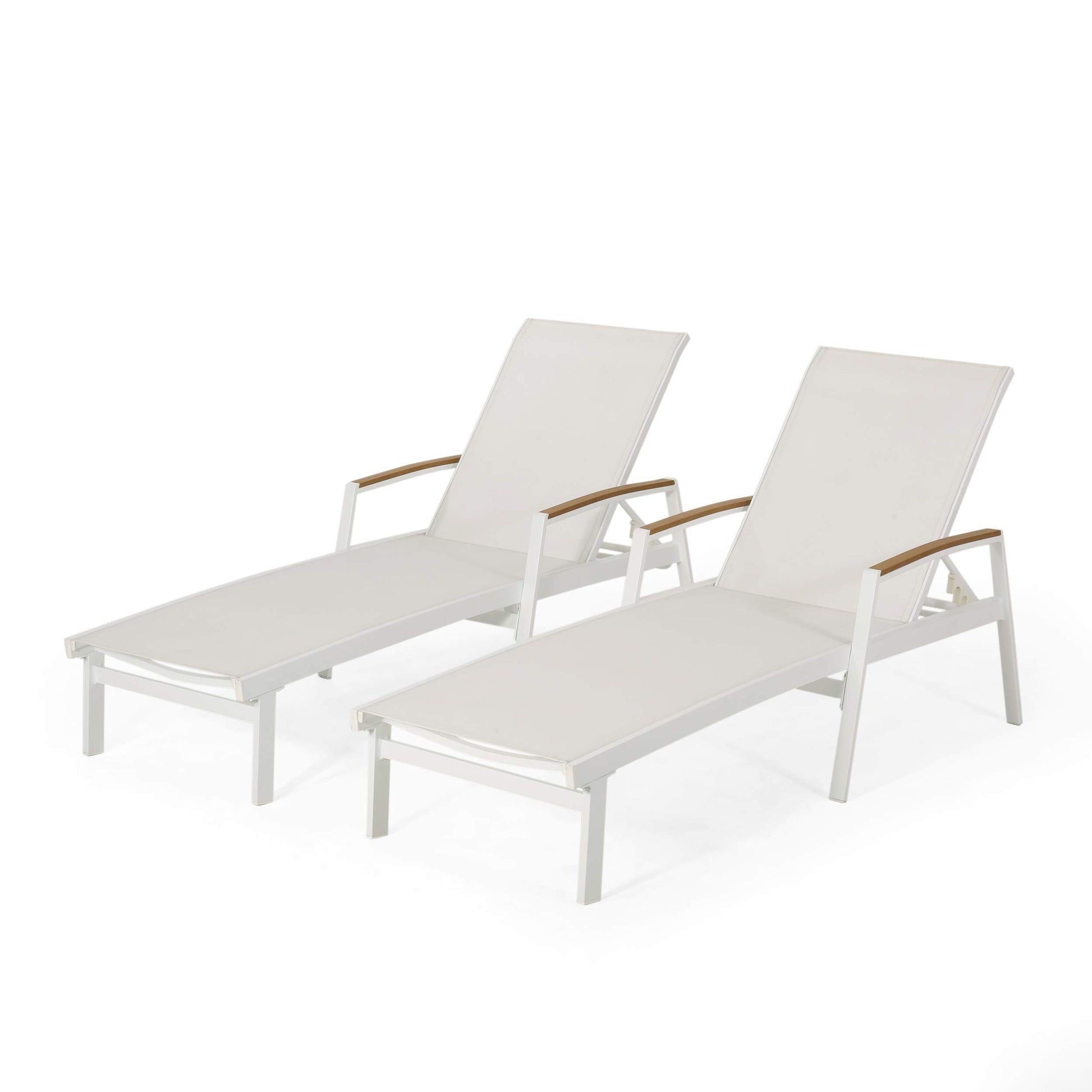 Teresa Outdoor Aluminum Chaise Lounge with Mesh Seating (Set of 2), White