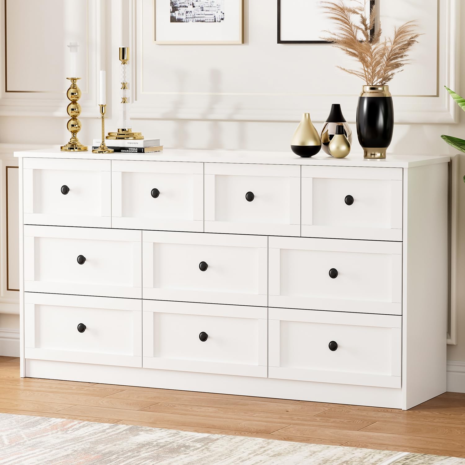 - Perfect for bedrooms, living rooms, dens, closets, hallways, nurseries, or wherever you like, this modern wood dresser blends well with a variety of interior styles. Available in black or white, this 10 drawer double dresser fits most home decor styles. Use the CHUWELL bedroom furniture set to create a versatile storage layout for your home