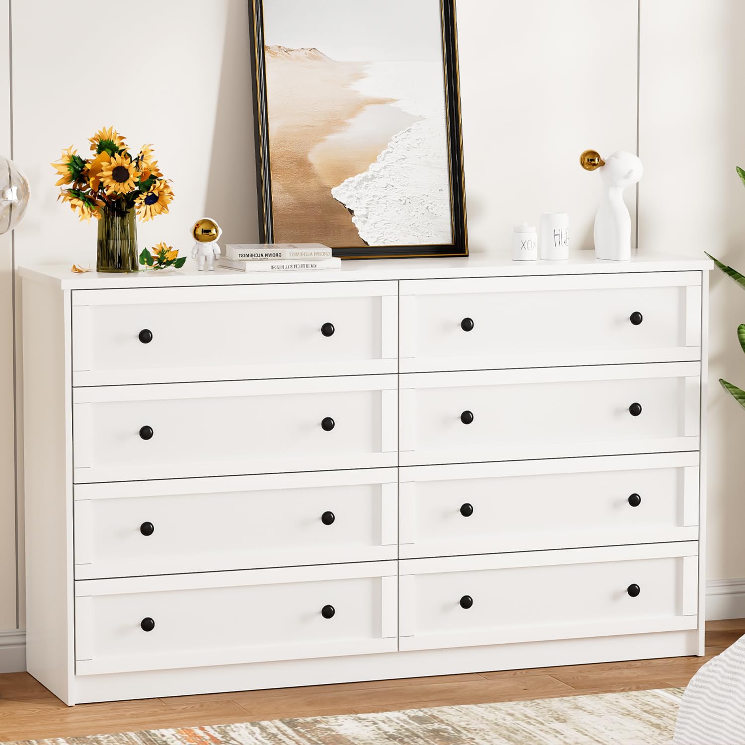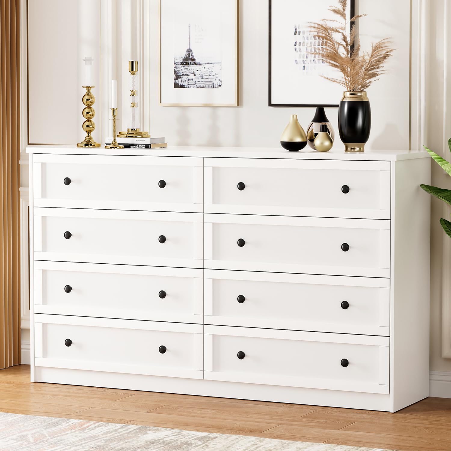 - Perfect for bedrooms, living rooms, dens, closets, hallways, nurseries, or wherever you like, this modern wood dresser blends well with a variety of interior styles. Available in black or white, this 8 drawer double dresser fits most home decor styles. Use the CHUWELL bedroom furniture set to create a versatile storage layout for your home