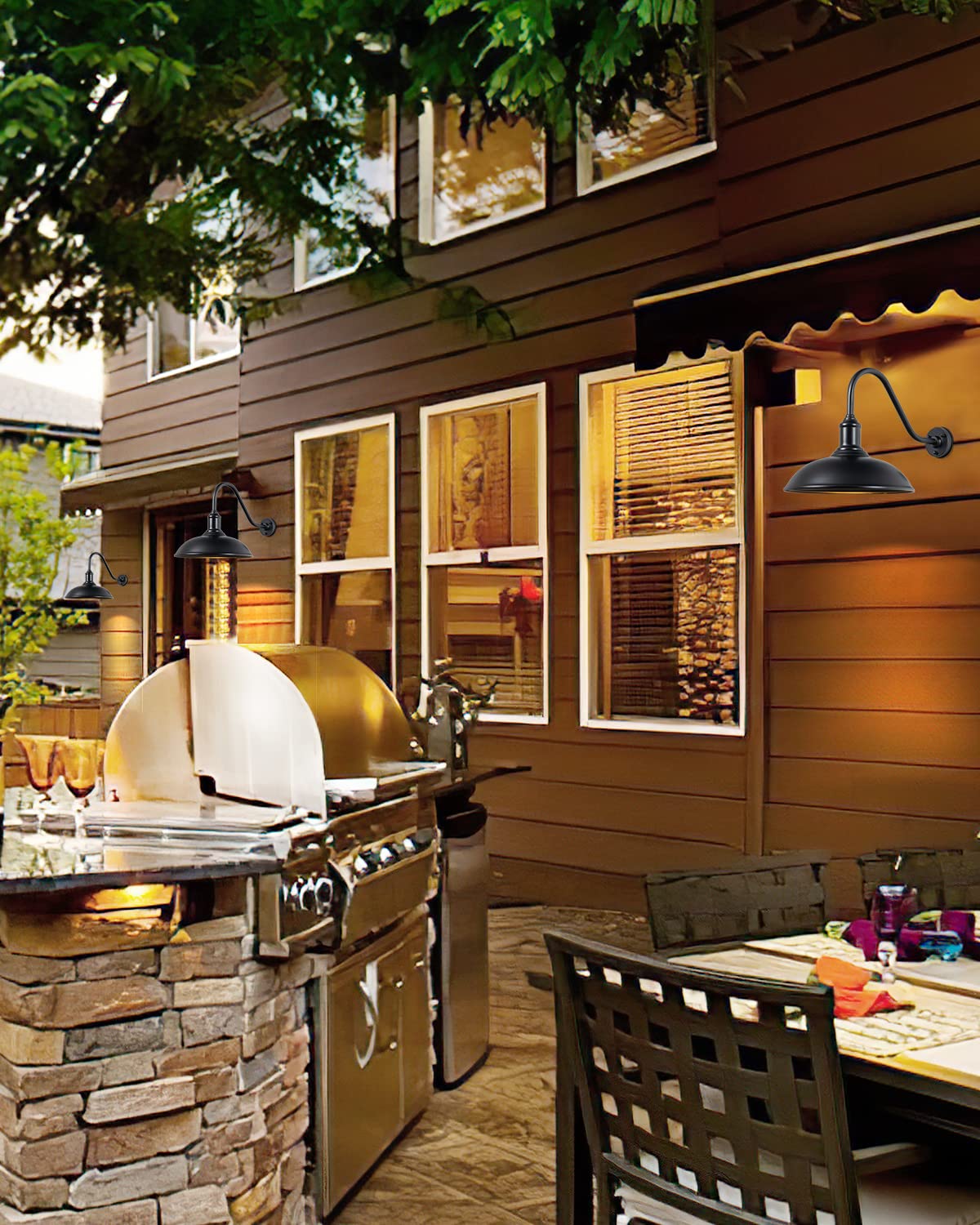 - The 18" large gooseneck barn light fixture with E26 base is compatible with a variety of bulb types for quick and easy installation. ( Bulb Not Included).