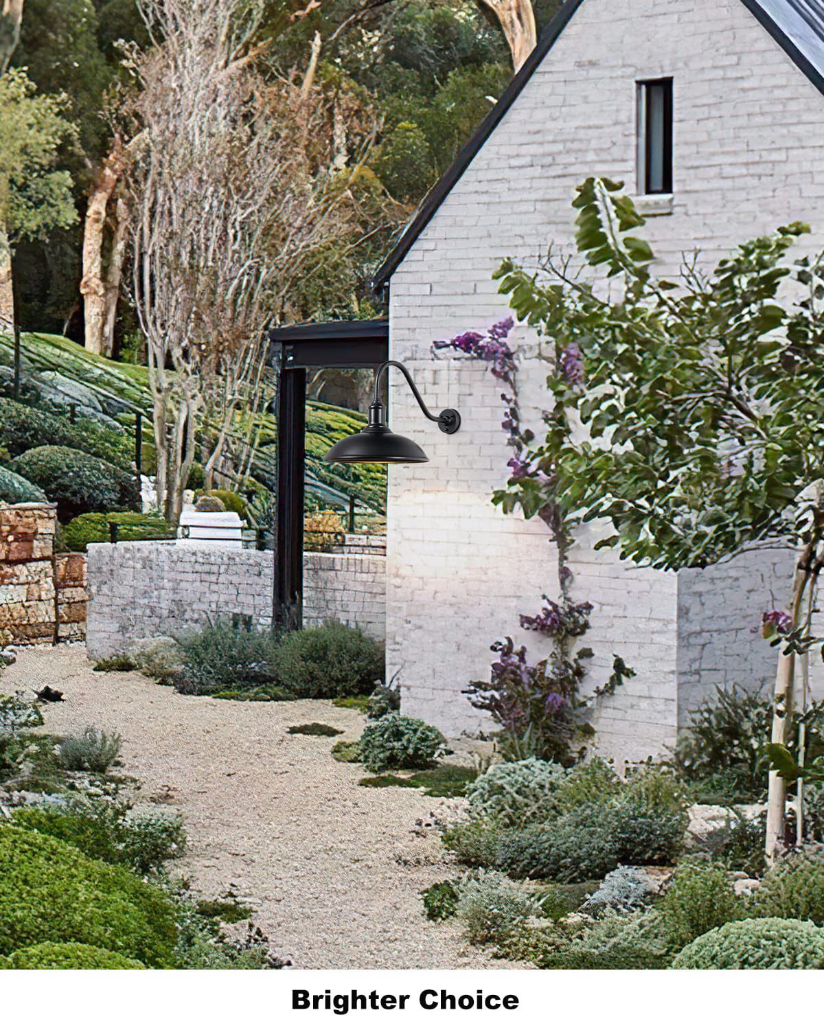 - The farmhouse, vintage style of this wall light fixture features a classic gooseneck arm and metal shade that looks great with any style of decor and is ideal for both outdoor and indoor spaces.