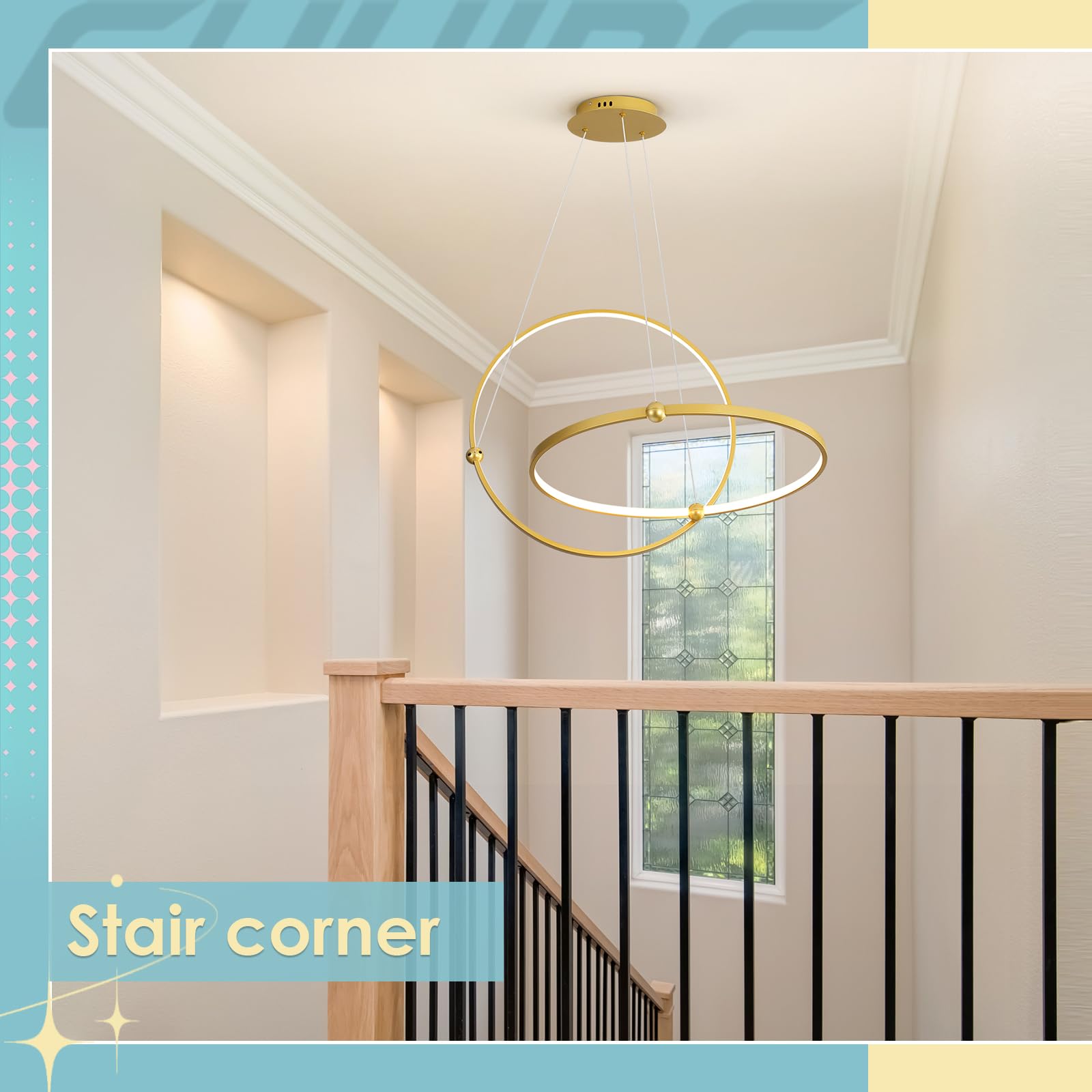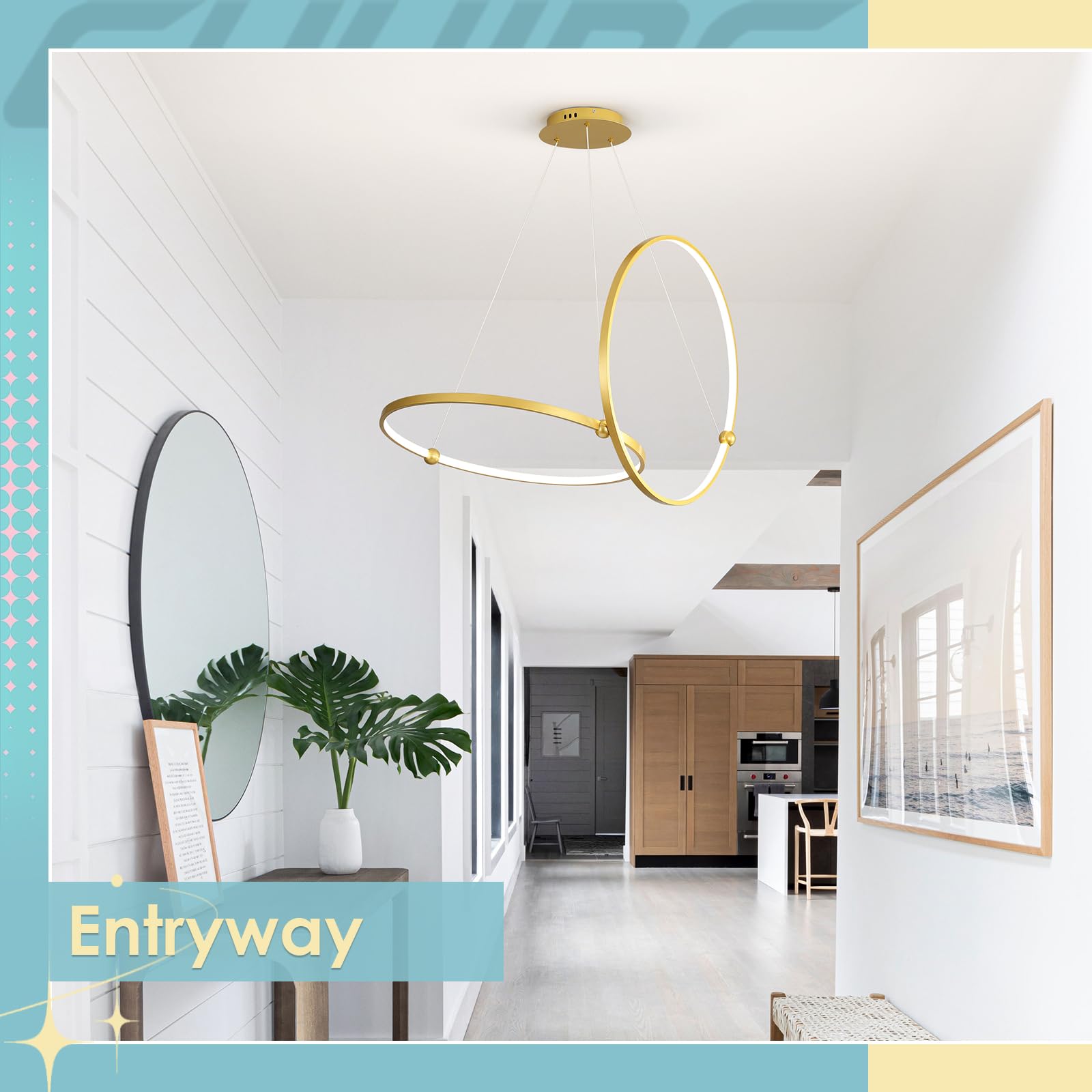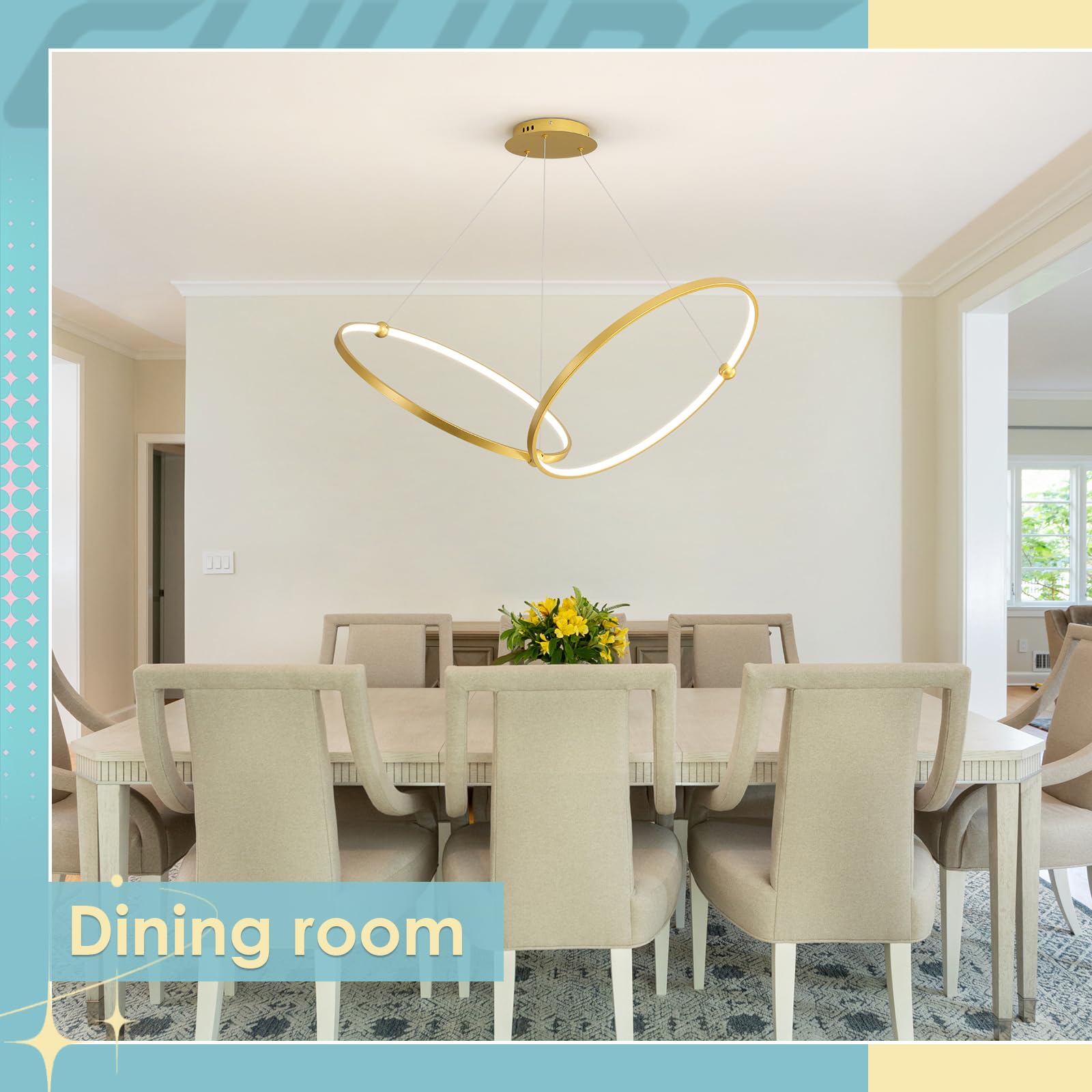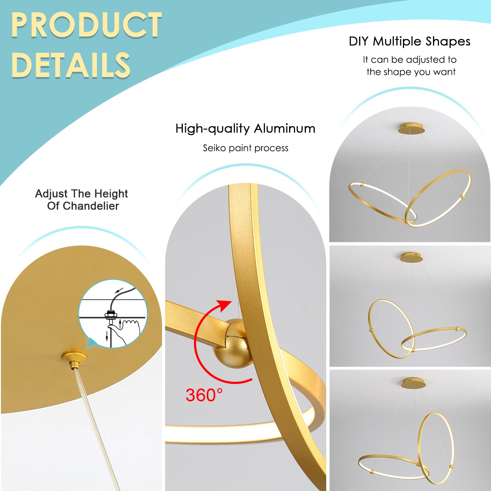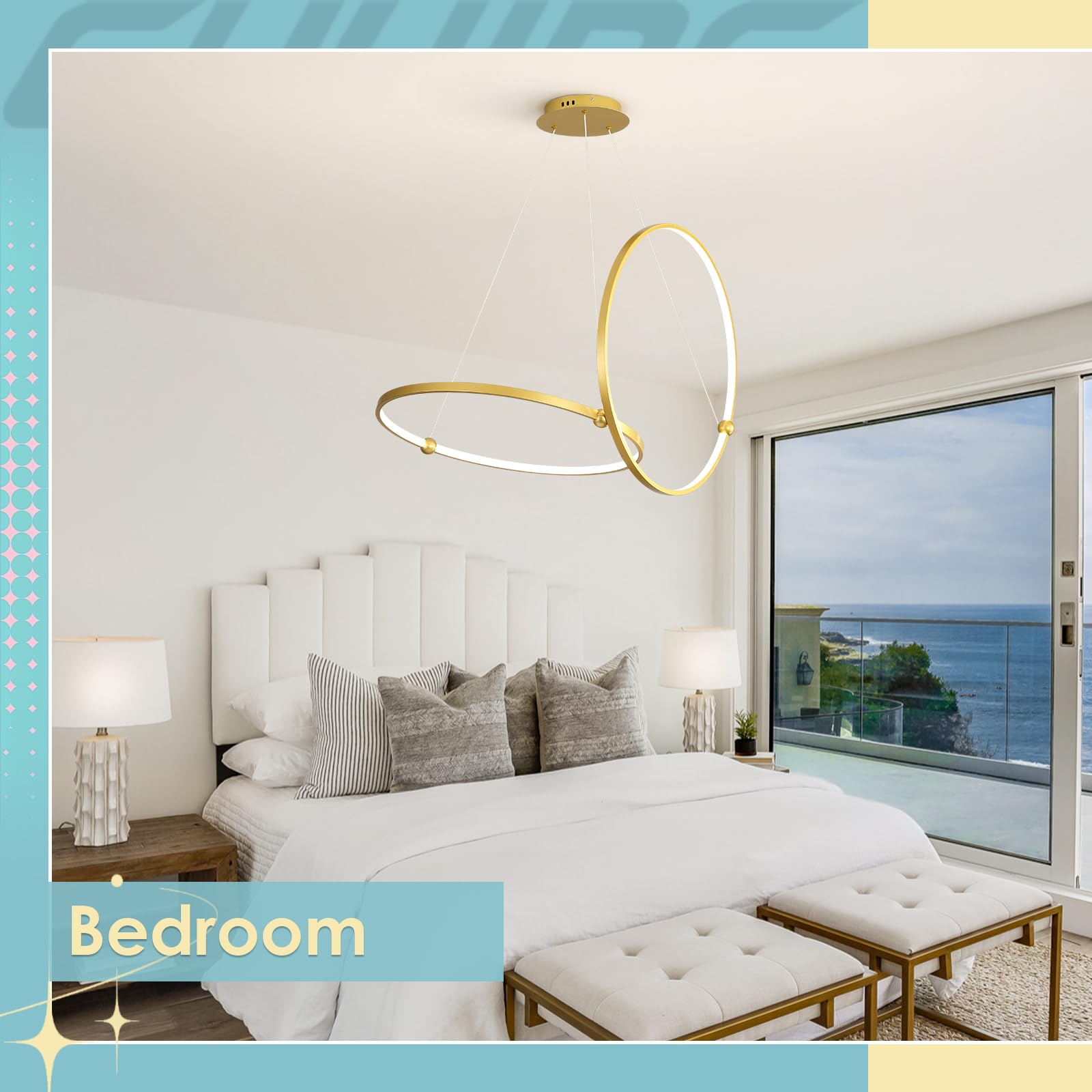- UNIQUE MODERN DESIGN: This Modern Chandelier utilizes 2 LED rings strips with curves to create a unique modern style. The simple design of this Gold Chandelier is never out of style and very easy to match your home's décor