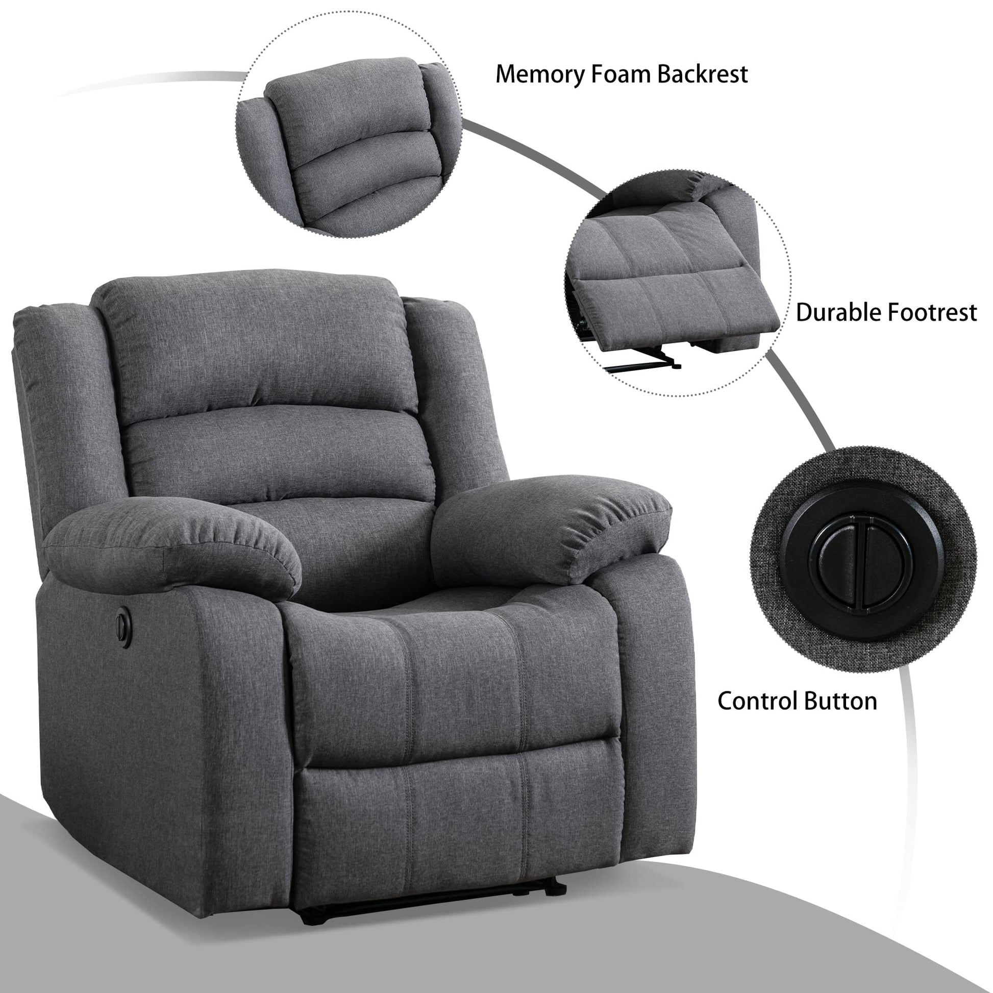 Classic Power Recliner Chair, Oversized Electric Overstuffed Chair