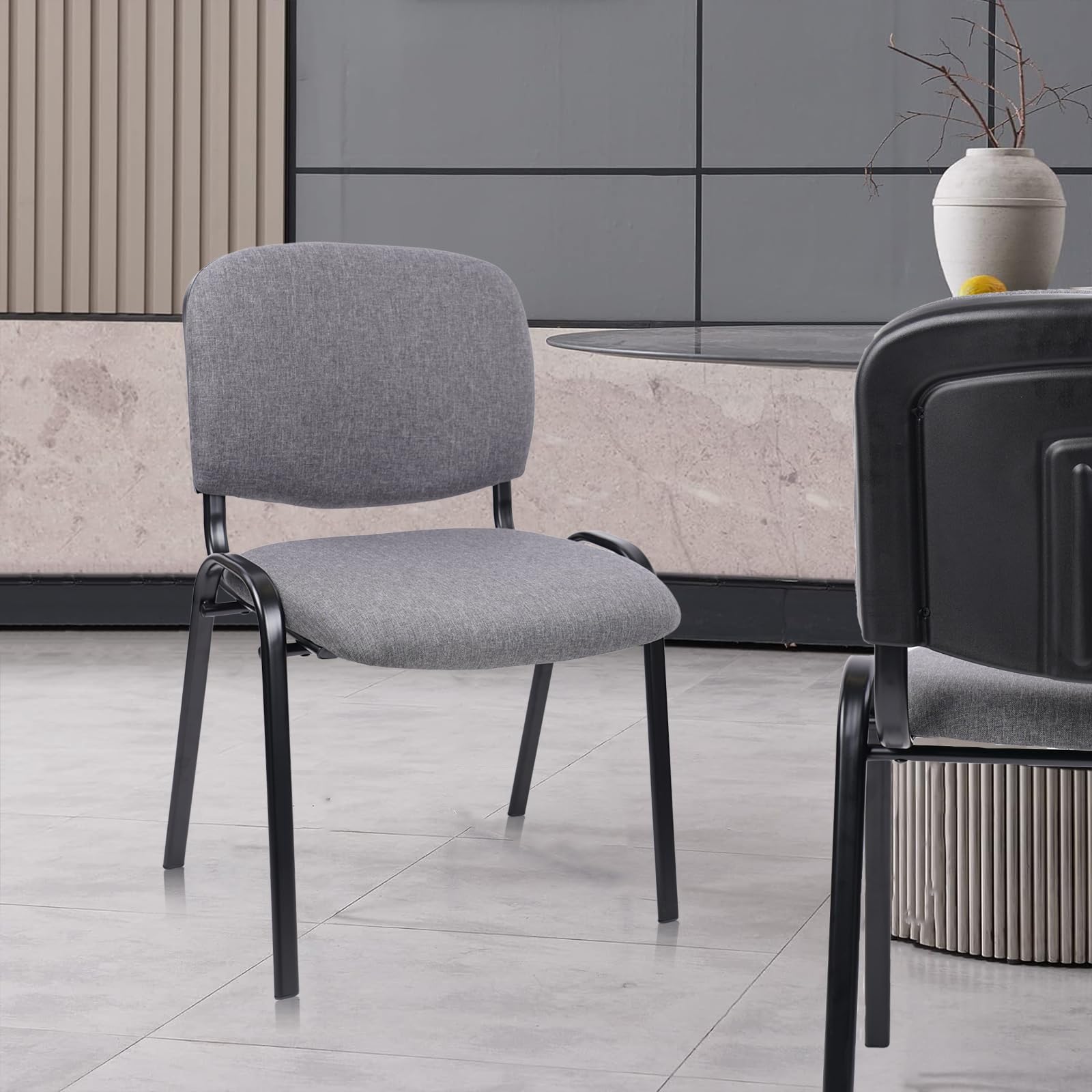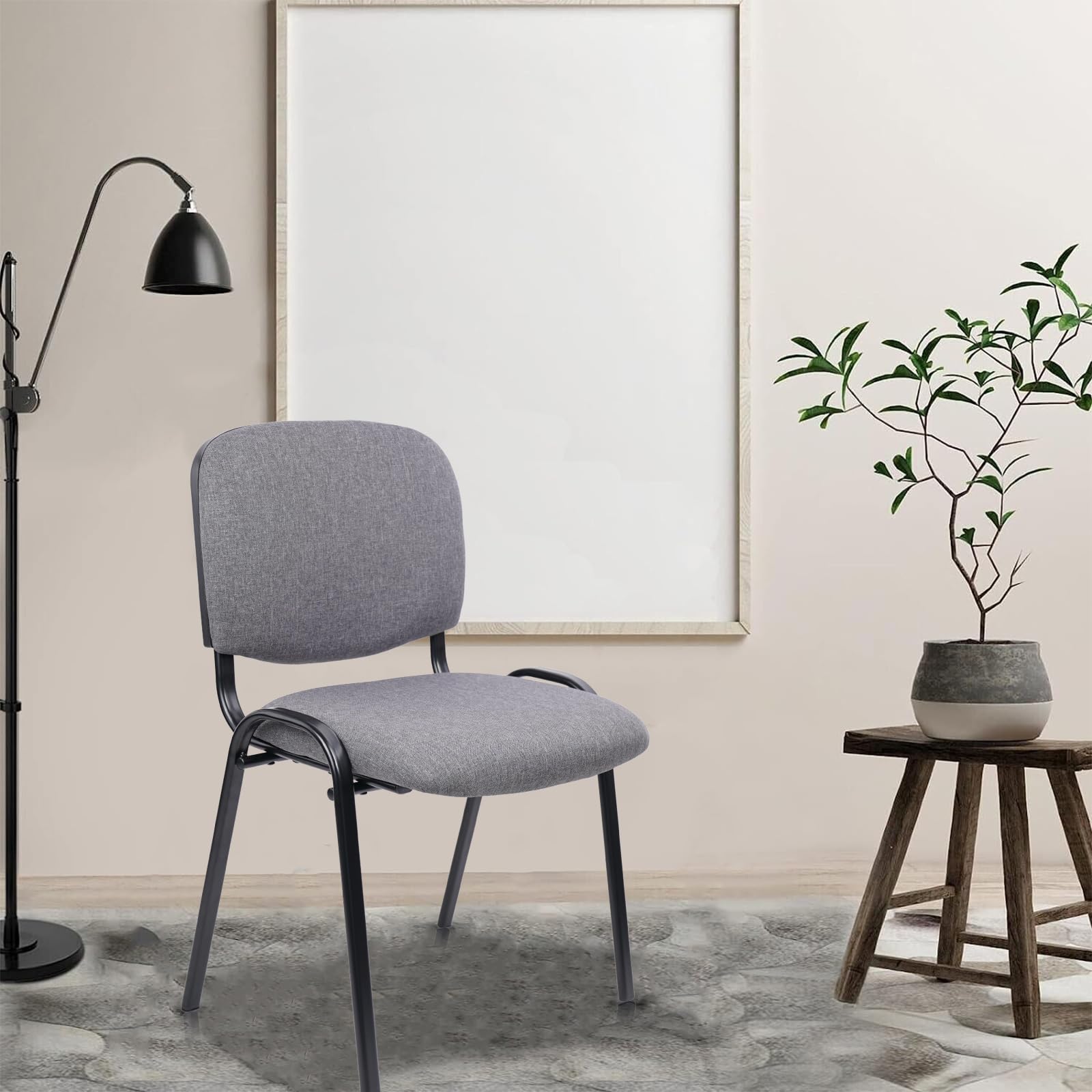 Set of 5 Pack Waiting Room Chairs Fabric Grey Stackable Chairs Metal Frame