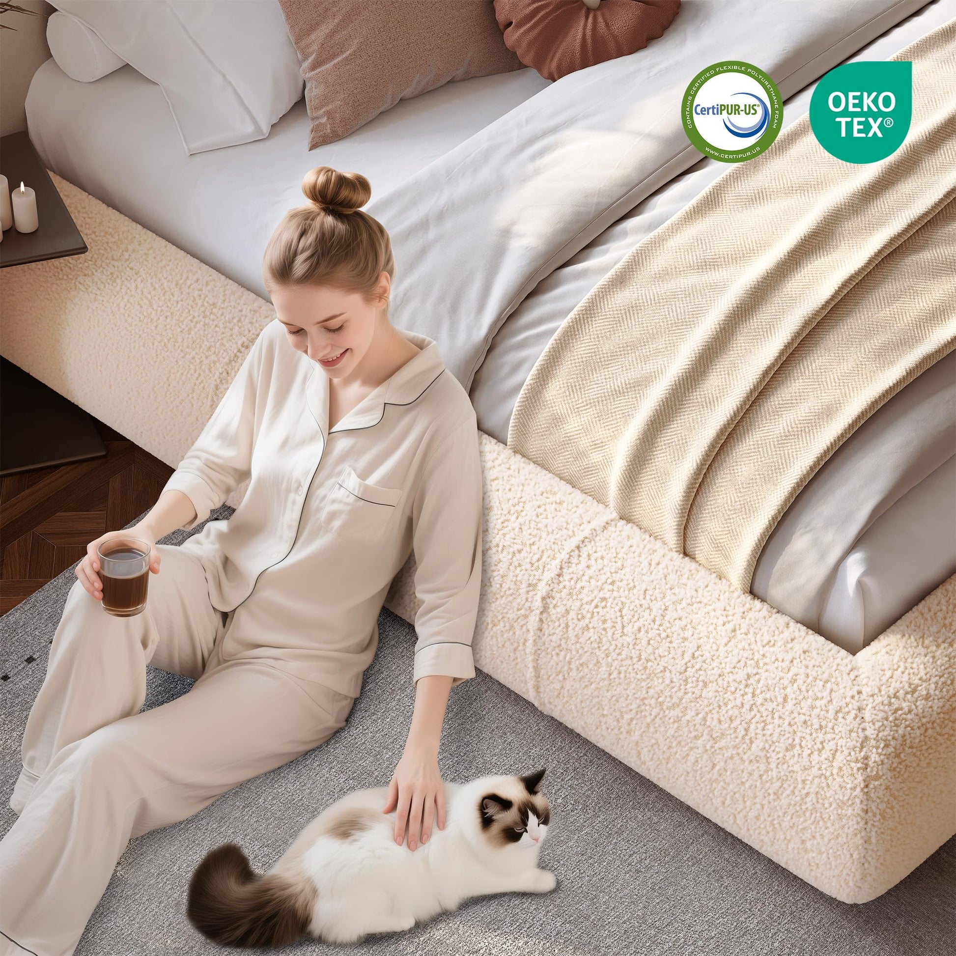 Transform your bedroom with this contemporary cloud-style bed frame featuring anti-collision rounded corners and a sophisticated beige upholstered finish. Designed for modern living spaces, this queen-size frame combines elegant aesthetics with practical functionality.