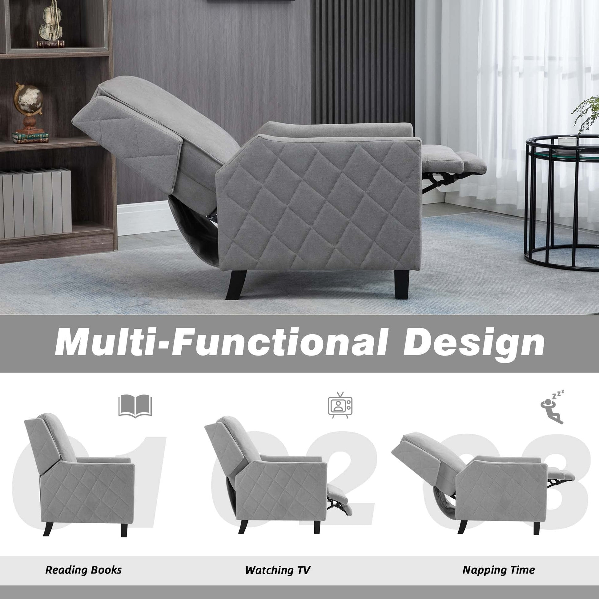 CloudEase Push-Back Recliner Chair Tufted Armchair with Pop-Up Footrest