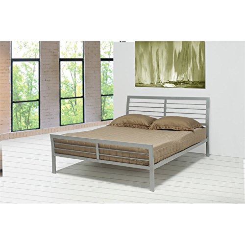 Details: Contemporary Metal Silver Platform Queen Size Bed Dimension: 62"W 38"H. Size: Queen. Finish: Metal Silver. Material: Iron. This Contemporary Style Iron queen sizes bed is finished in a metal silver. The bed features supports which hold the mattress.