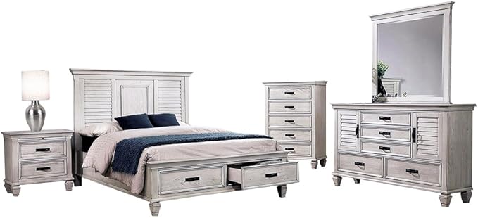 Franco Eastern King Bed 5-Piece Set, Distressed White