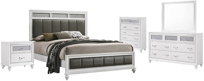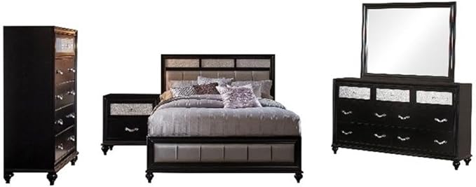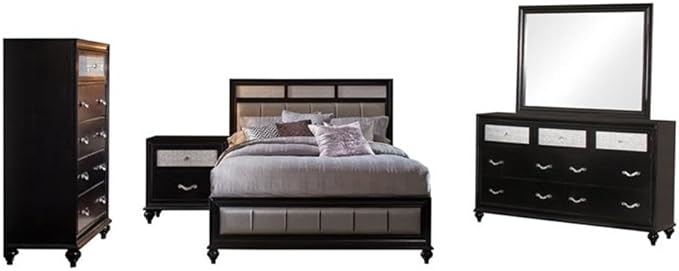 Barzini 5-Piece Bedroom Set with Upholstered Headboard, Queen, Black