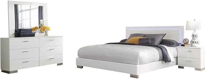 - This set includes a dresser and mirror combination, a nightstand, and an Eastern King bed