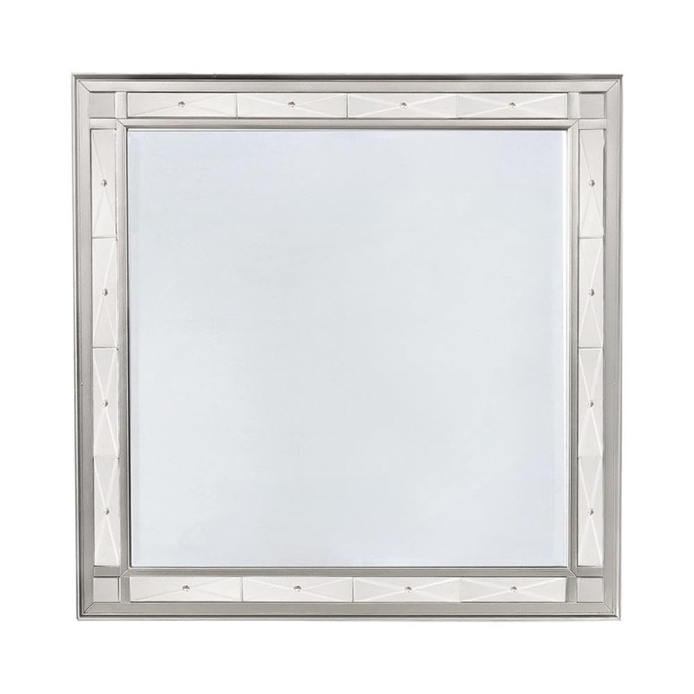 - Infuse any bedroom with luxe, glamorous style. This magnificent, five-piece bedroom set will instantly transform your space. Each elegant piece is enhanced by the brilliant, reflective shine of real mirrored panels. The bed is upholstered in metallic leatherette accentuated by beautiful, wave-like patterns. A lovely, metallic finish adds even more shimmering sparkle, rounding out its transitional design with chic, stunning opulence.