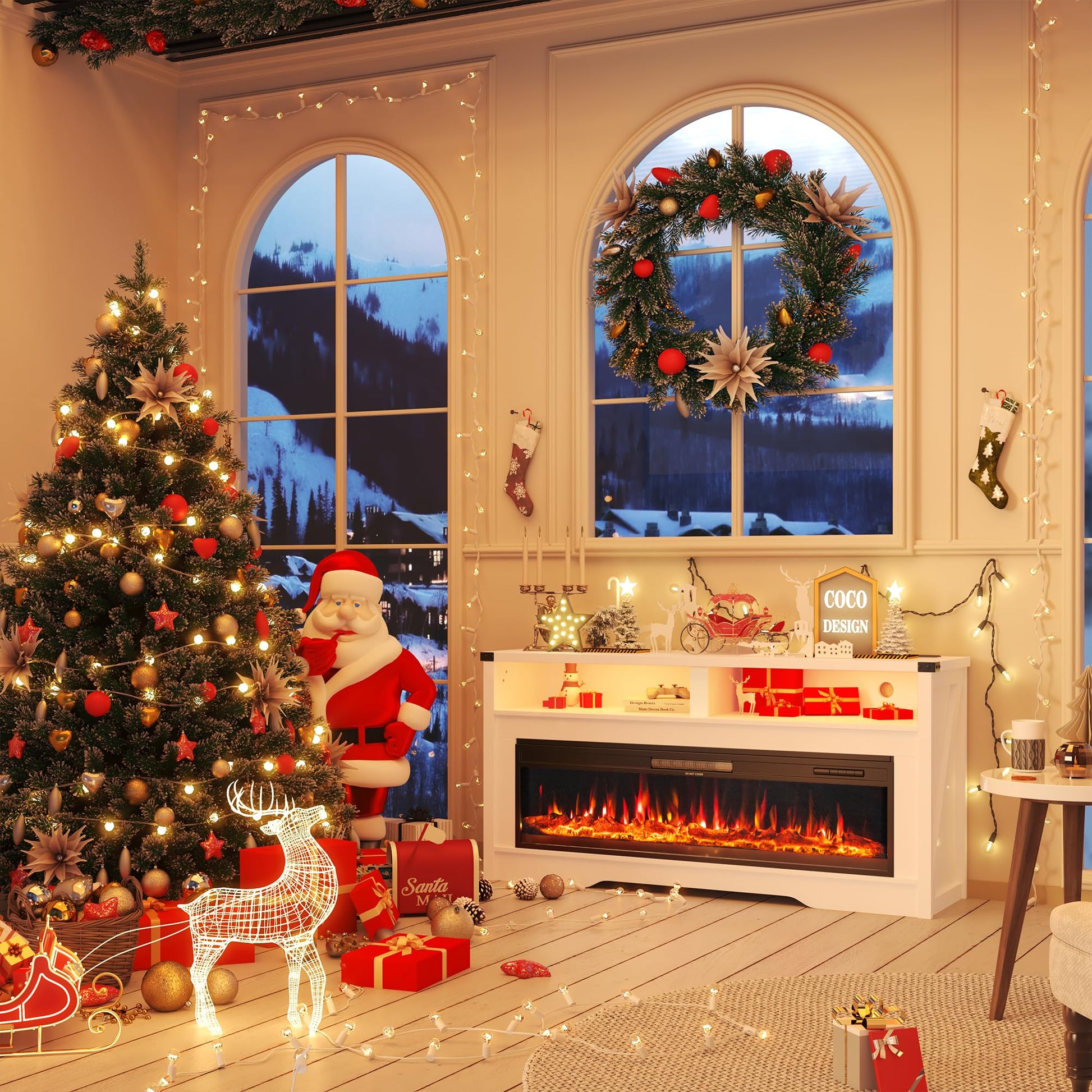 - Remote Control: This product can be used to control both the fireplace and the TV cabinet with a remote control, and the TV cabinet has LED lighting effects, which can be adjusted in 15 colors to bring more beautiful effects to your living room.