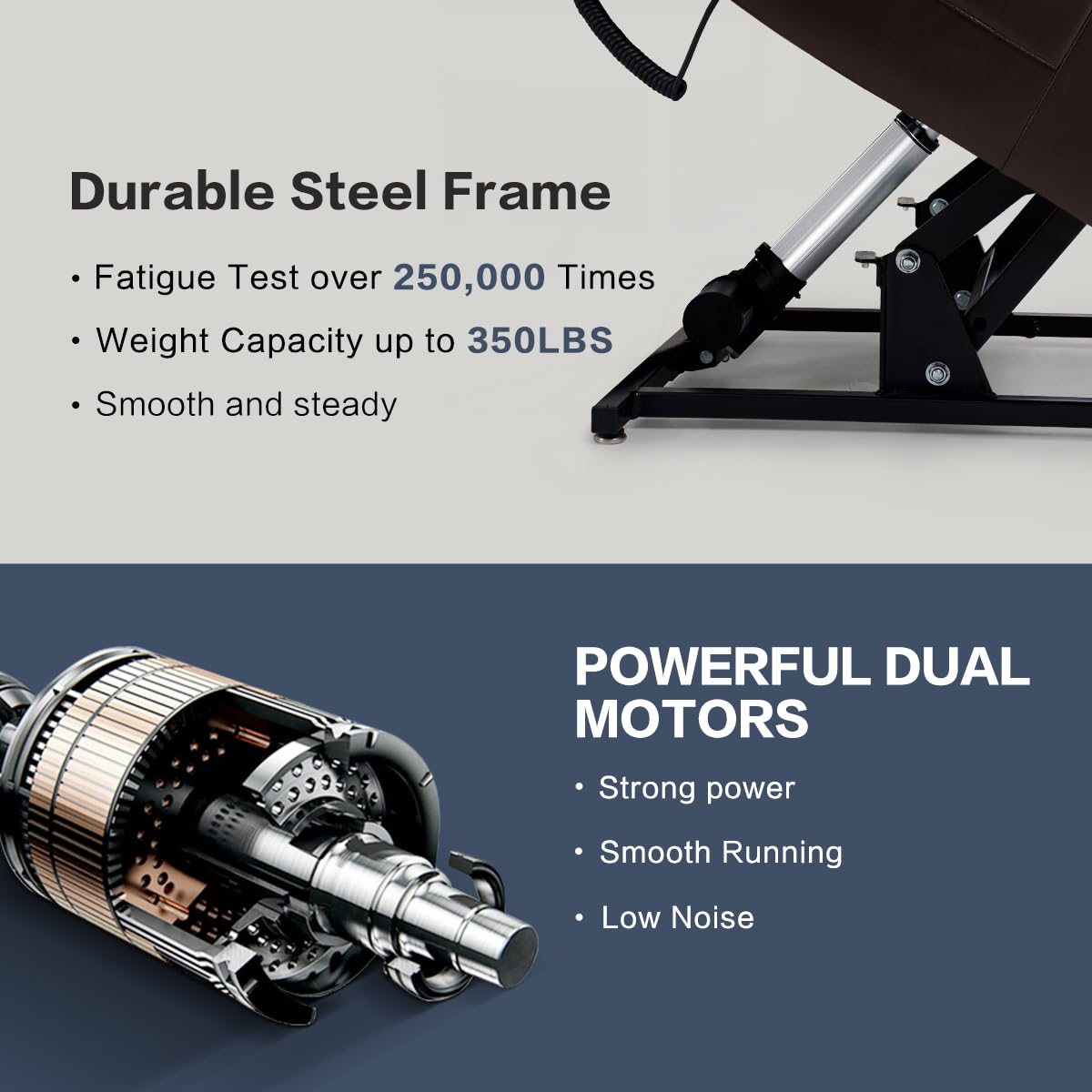 - POWER LIFT ASSISTANCE Adopt Germany OKIN Dual Motor which can independently control the backrest and footrest between 90-180°. Assist the seniors stand up easily and adjust to any position smoothly. You can do everything from your lift chair with the remote control.