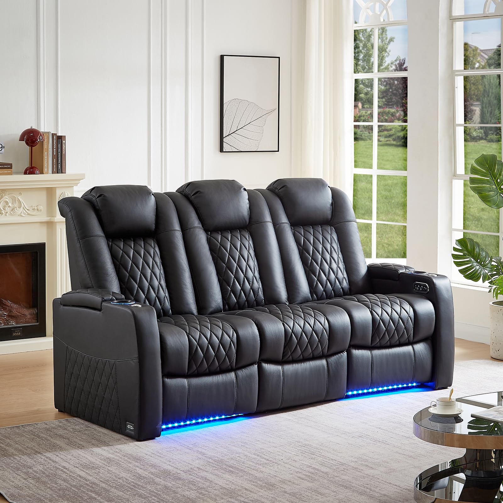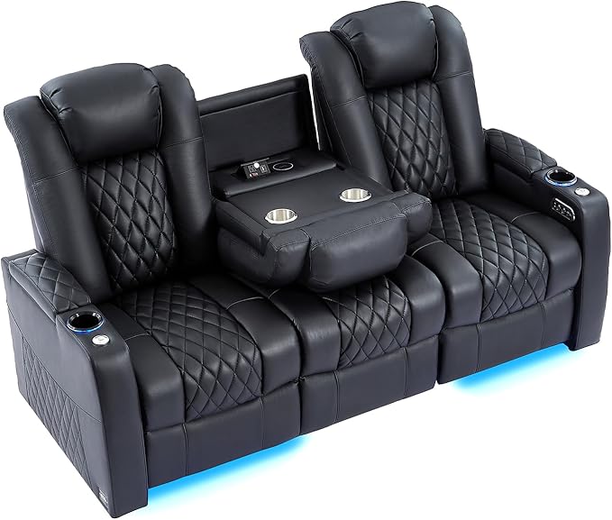 - COMFORT COMES FIRST: The Comfiroom home theater sofa is crafted from premium leather, offering a delicate and smooth touch that brings an extraordinary comfort experience, making every contact as gentle as skin. Filling with high-resilience foam that quickly bounces back and maintains its shape, ensuring the same comfortable support every time you sit down. With a maximum recline of 150° in zero-gravity mode, you will achieve the ultimate comfort